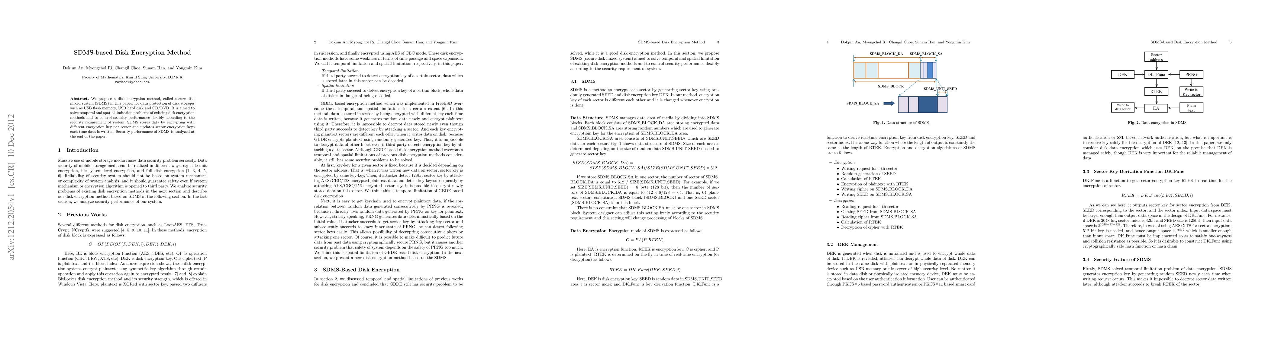 This paper introduces the secure disk mixed system (SDMS) for disk encryption, aiming to address limitations of existing methods by flexibly controlling security performance. SDMS encrypts data with different keys per sector and updates these keys with each write operation, followed by a security performance analysis.