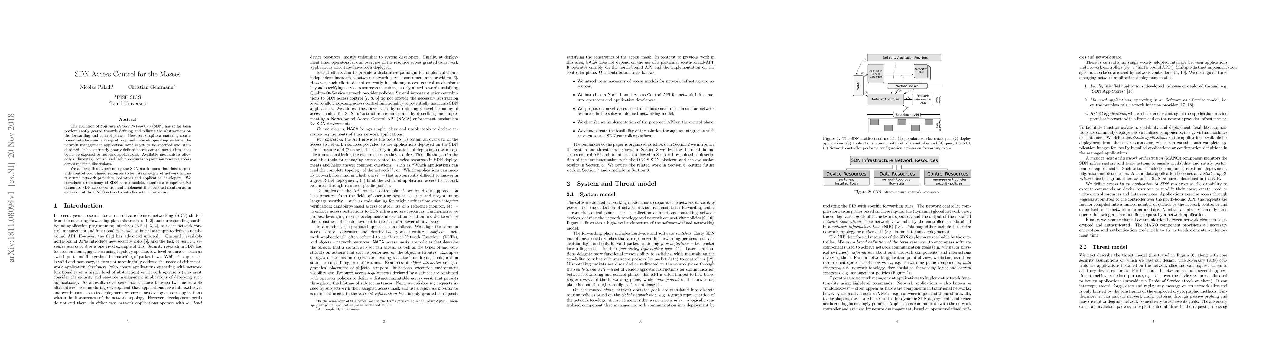 The evolution of Software-Defined Networking (SDN) has so far been predominantly geared towards defining and refining the abstractions on the forwarding and control planes. However, despite a maturing south-bound interface and a range of proposed network operating systems, the network management application layer is yet to be specified and standardized. It has currently poorly defined access control mechanisms that could be exposed to network applications. Available mechanisms allow only rudimentary control and lack procedures to partition resource access across multiple dimensions. We address this by extending the SDN north-bound interface to provide control over shared resources to key stakeholders of network infrastructure: network providers, operators and application developers. We introduce a taxonomy of SDN access models, describe a comprehensive design for SDN access control and implement the proposed solution as an extension of the ONOS network controller intent framework.