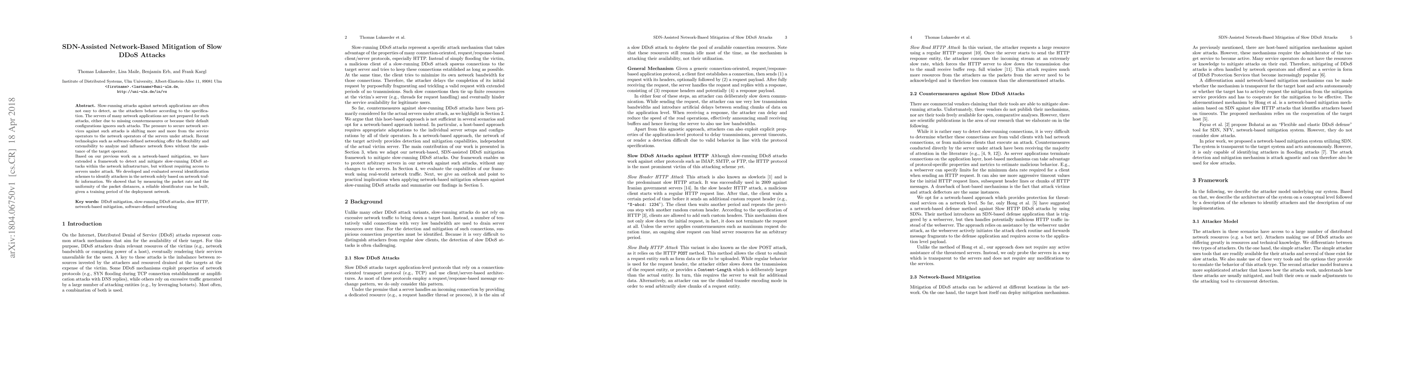 A new network-based approach uses SDN to detect and mitigate slow DDoS attacks without server access. It identifies attackers through packet rate and distance analysis, improving security against malicious applications.