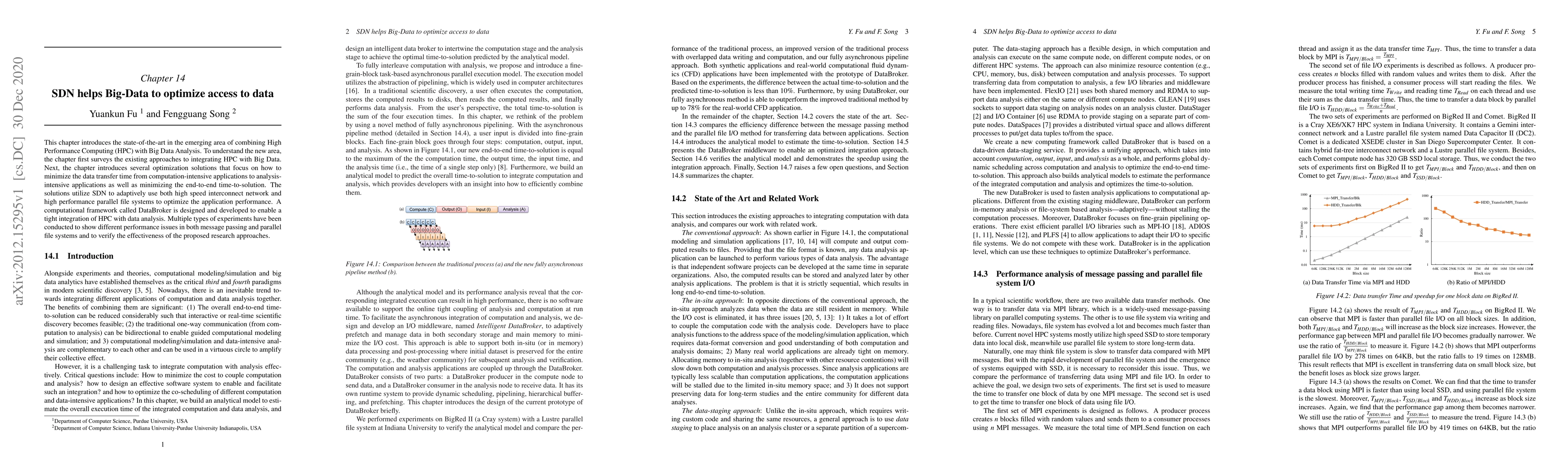 This chapter introduces the state-of-the-art in the emerging area of combining High Performance Computing (HPC) with Big Data Analysis. To understand the new area, the chapter first surveys the existing approaches to integrating HPC with Big Data. Next, the chapter introduces several optimization solutions that focus on how to minimize the data transfer time from computation-intensive applications to analysis-intensive applications as well as minimizing the end-to-end time-to-solution. The solutions utilize SDN to adaptively use both high speed interconnect network and high performance parallel file systems to optimize the application performance. A computational framework called DataBroker is designed and developed to enable a tight integration of HPC with data analysis. Multiple types of experiments have been conducted to show different performance issues in both message passing and parallel file systems and to verify the effectiveness of the proposed research approaches.