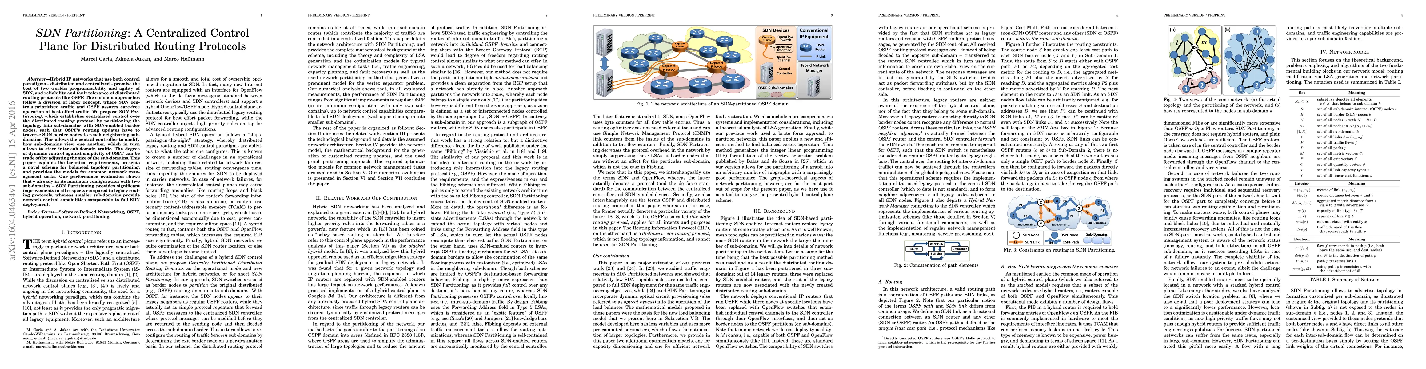 This paper proposes SDN Partitioning to integrate centralized SDN control with distributed OSPF routing, achieving programmability and reliability. It partitions the network into sub-domains with SDN-enabled border nodes to steer inter-sub-domain traffic, demonstrating significant performance improvements over legacy protocols.