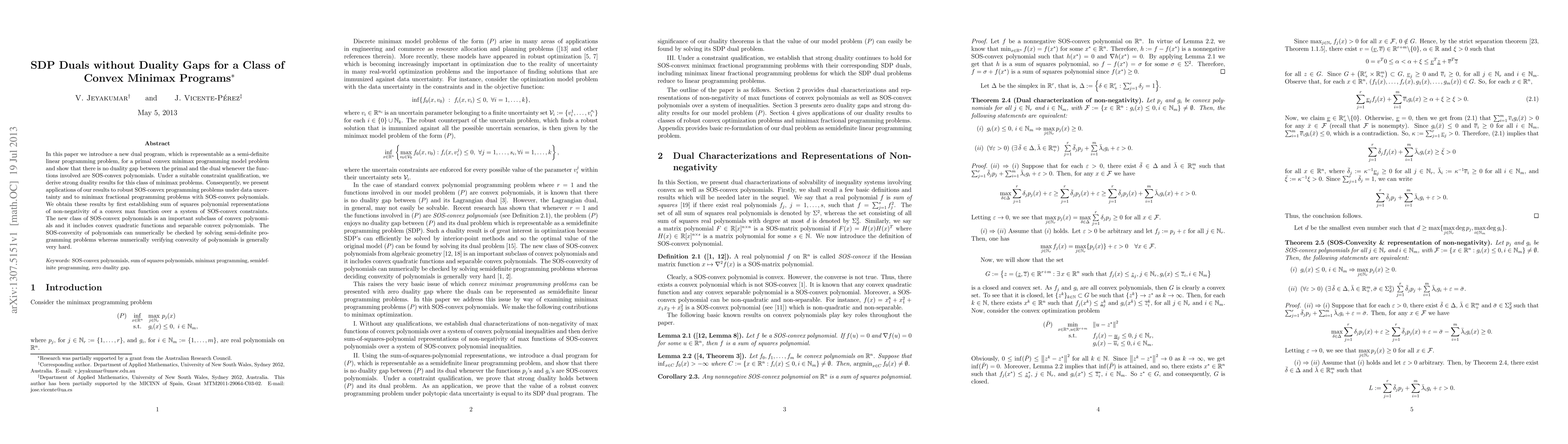 The paper presents a new dual program for a class of convex minimax problems, proving strong duality results under suitable constraint qualifications and SOS-convexity conditions.
