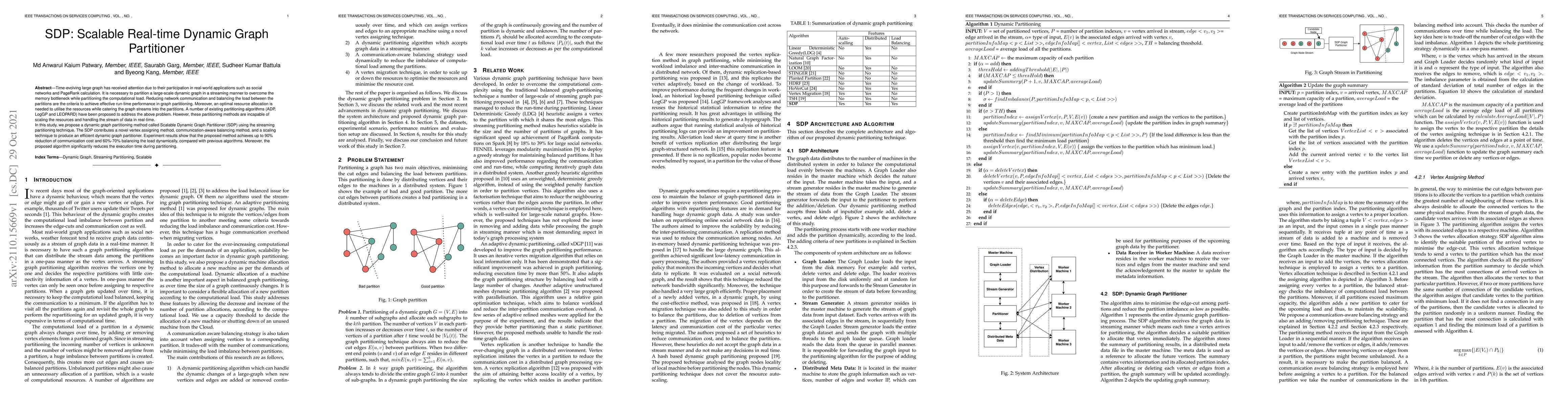 This paper proposes the Scalable Dynamic Graph Partitioner (SDP) to efficiently partition large-scale, time-evolving graphs in real-time, addressing memory and computational load issues. The SDP method achieves significant reductions in communication costs and load balancing, outperforming existing algorithms by up to 90% and 60%-70% respectively.