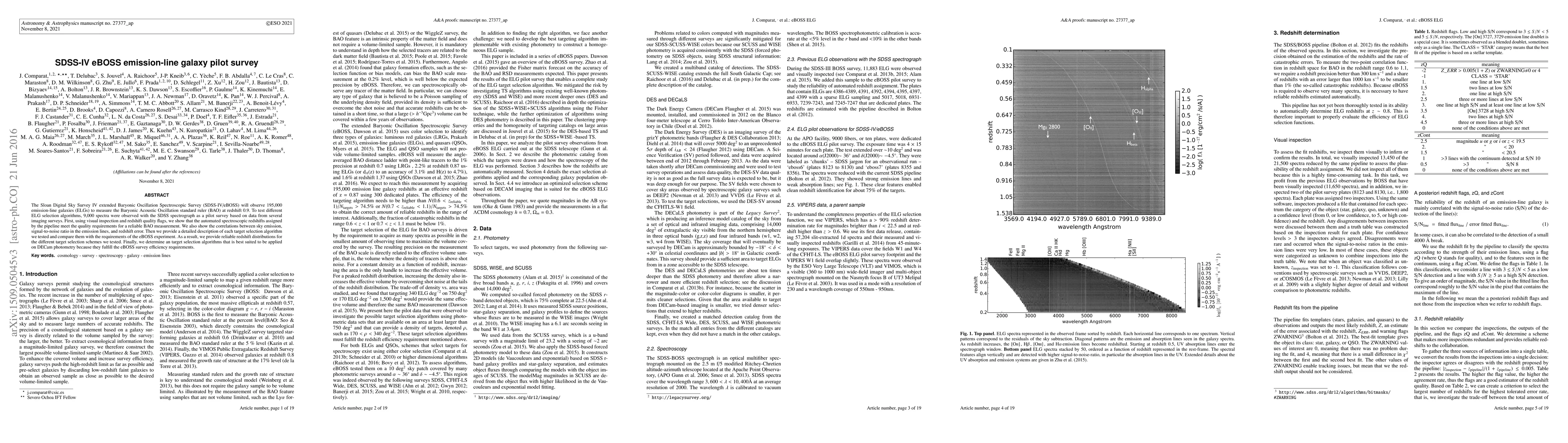 The SDSS-IV eBOSS pilot survey observed 9,000 emission-line galaxies to test selection algorithms, confirming the reliability of automated redshifts for Baryonic Acoustic Oscillation measurements. The best target selection method for DECam photometry was identified based on survey efficiency requirements.