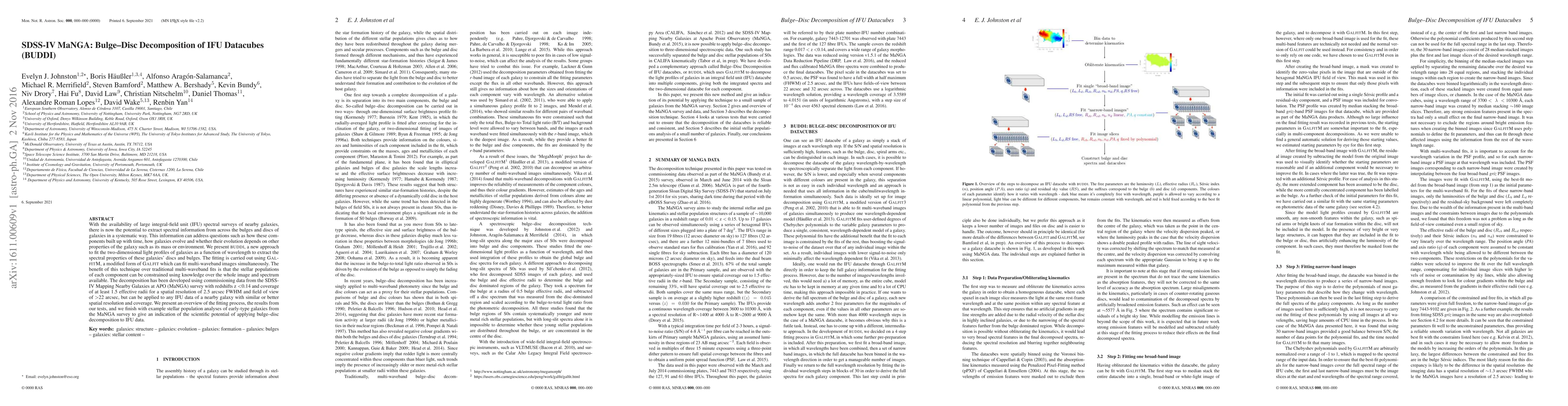 BUDDI is a new method for decomposing the spectral properties of galaxy bulges and discs using IFU data from the MaNGA survey. It fits two-dimensional light profiles across the entire galaxy to extract detailed stellar population information, offering improved constraints over traditional methods.