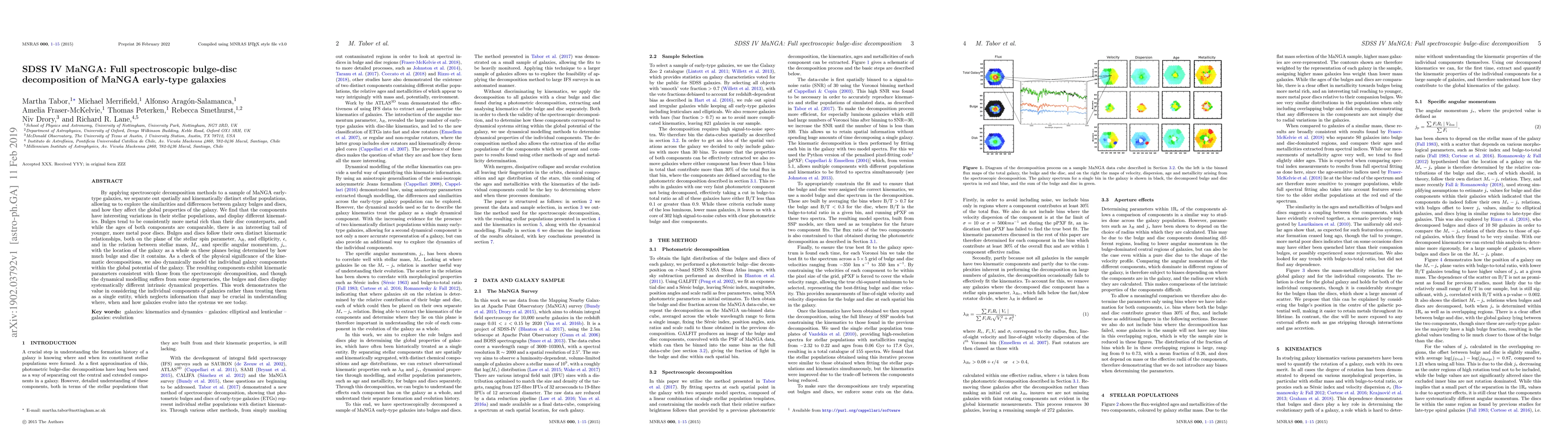 By applying spectroscopic decomposition methods to a sample of MaNGA early-type galaxies, we separate out spatially and kinematically distinct stellar populations, allowing us to explore the similarities and differences between galaxy bulges and discs, and how they affect the global properties of the galaxy. We find that the components have interesting variations in their stellar populations, and display different kinematics. Bulges tend to be consistently more metal rich than their disc counterparts, and while the ages of both components are comparable, there is an interesting tail of younger, more metal poor discs. Bulges and discs follow their own distinct kinematic relationships, both on the plane of the stellar spin parameter, lambda_R, and ellipticity, and in the relation between stellar mass and specific angular momentum, j, with the location of the galaxy as a whole on these planes being determined by how much bulge and disc it contains. As a check of the physical significance of the kinematic decompositions, we also dynamically model the individual galaxy components within the global potential of the galaxy. The resulting components exhibit kinematic parameters consistent with those from the spectroscopic decomposition, and though the dynamical modelling suffers from some degeneracies, the bulges and discs display systematically different intrinsic dynamical properties. This work demonstrates the value in considering the individual components of galaxies rather than treating them as a single entity, which neglects information that may be crucial in understanding where, when and how galaxies evolve into the systems we see today.