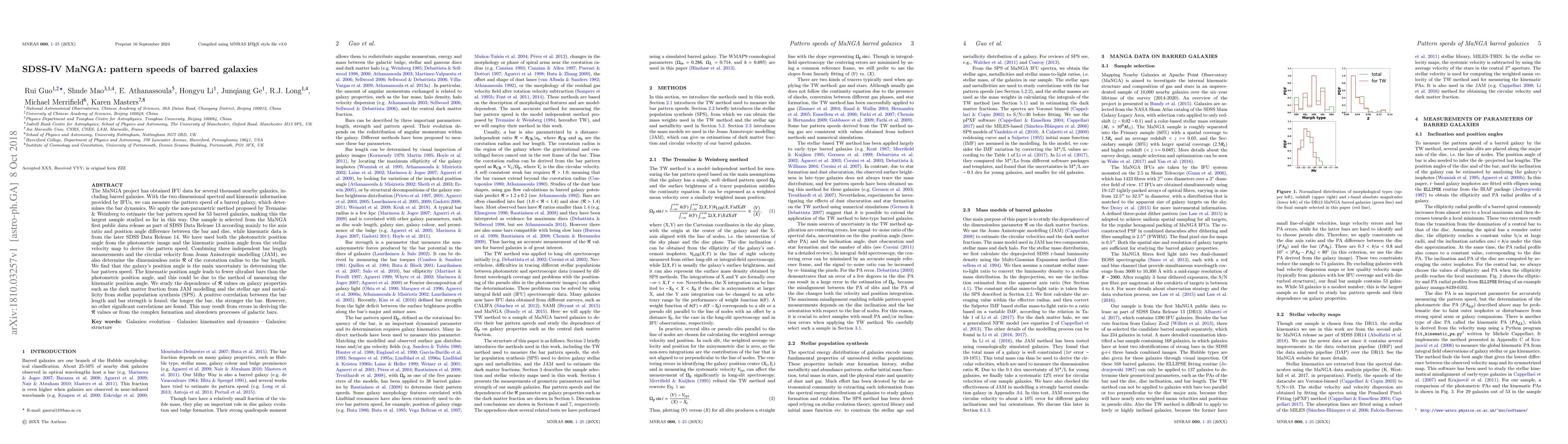 The application of the TW method to a large sample of barred galaxies from MaNGA, providing detailed measurements of bar pattern speeds and their relation to galaxy properties.