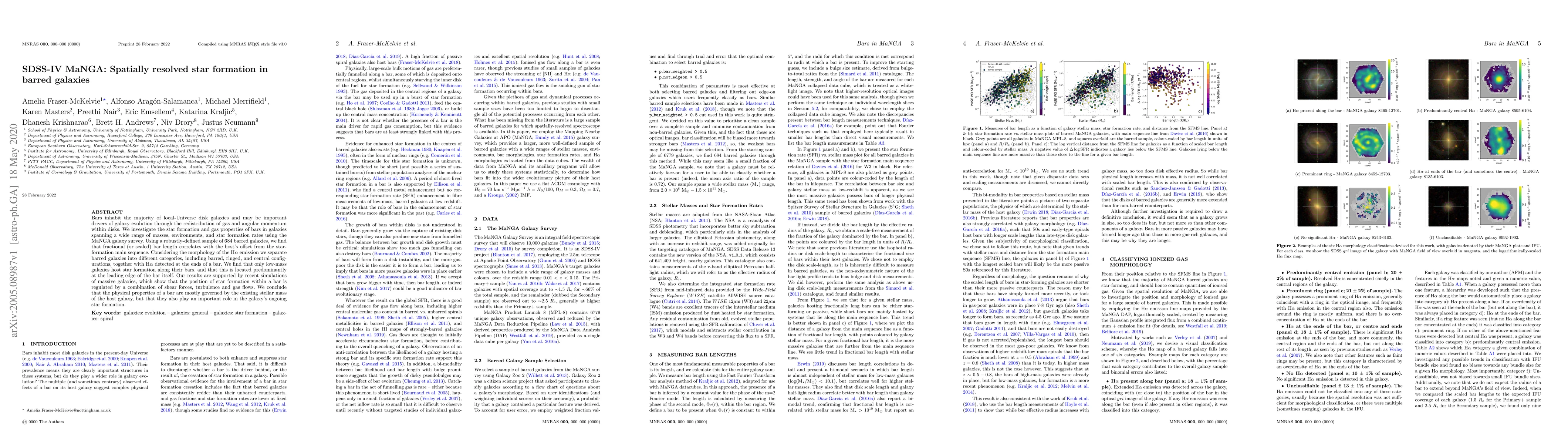 The MaNGA survey reveals that bars in galaxies significantly influence star formation, with low-mass galaxies showing star formation predominantly at the leading edge of bars. The study finds that bar length correlates with deviations from the star-formation main sequence, emphasizing the role of bars in galaxy evolution.