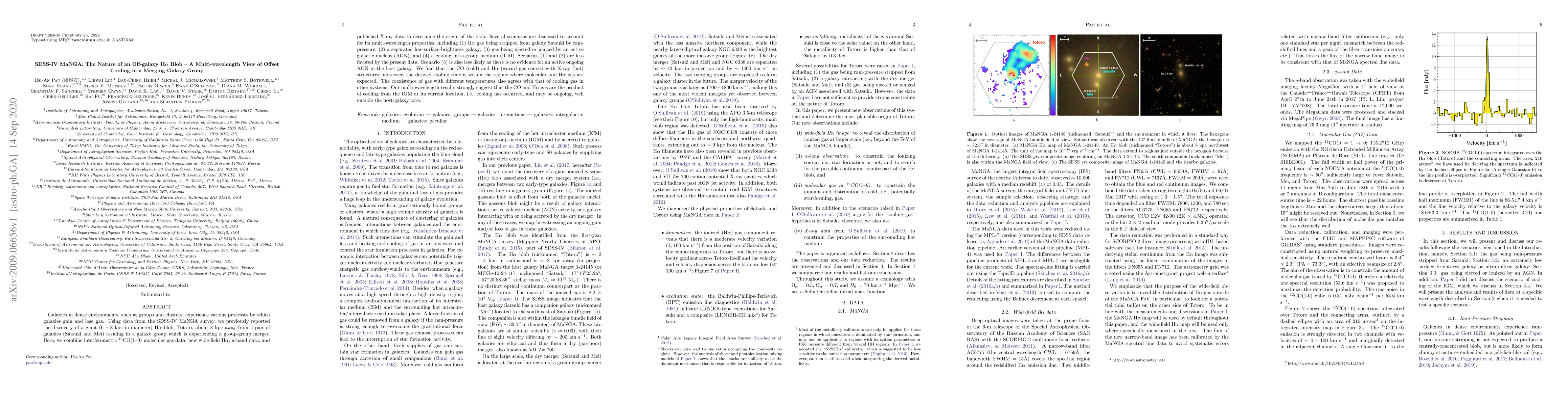 The SDSS-IV MaNGA survey discovered a large H$\alpha$ blob, Totoro, offset from a merging galaxy group. Multi-wavelength analysis suggests that the blob's gas likely originates from cooling intra-group medium (IGM) rather than being stripped from galaxies or ejected by an active galactic nucleus (AGN).