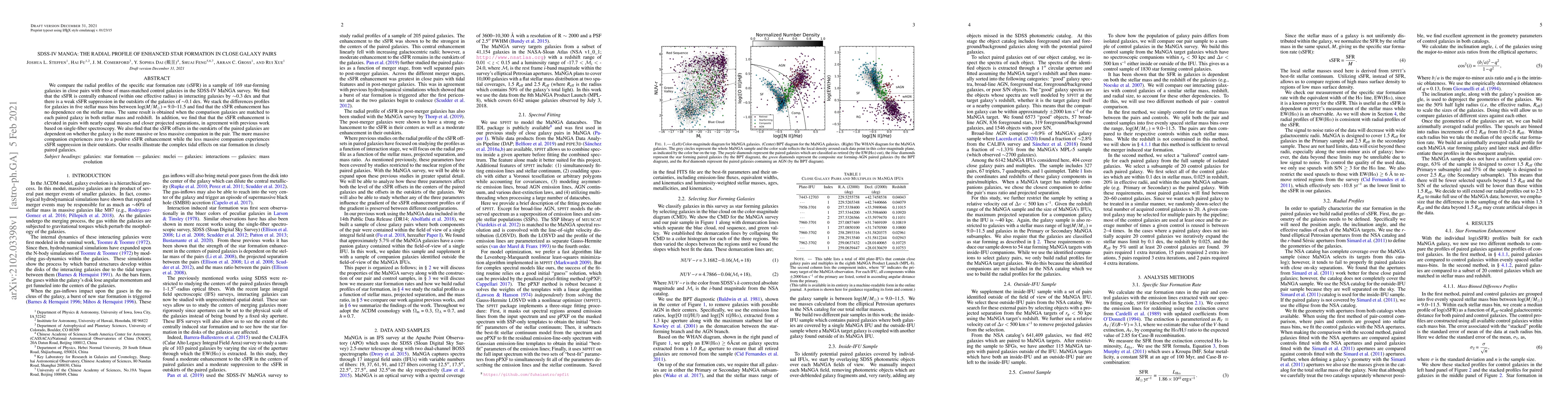The study analyzes 169 star-forming galaxies in close pairs from SDSS-IV MaNGA, finding a centrally enhanced specific star formation rate (sSFR) by ~0.3 dex and a weak suppression in outskirts by ~0.1 dex. The sSFR enhancement is mass-independent and stronger in nearly equal-mass, closer pairs. The more massive companion shows positive or no change, while the less massive one experiences outskirt suppression, highlighting complex tidal effects on star formation in interacting galaxies.