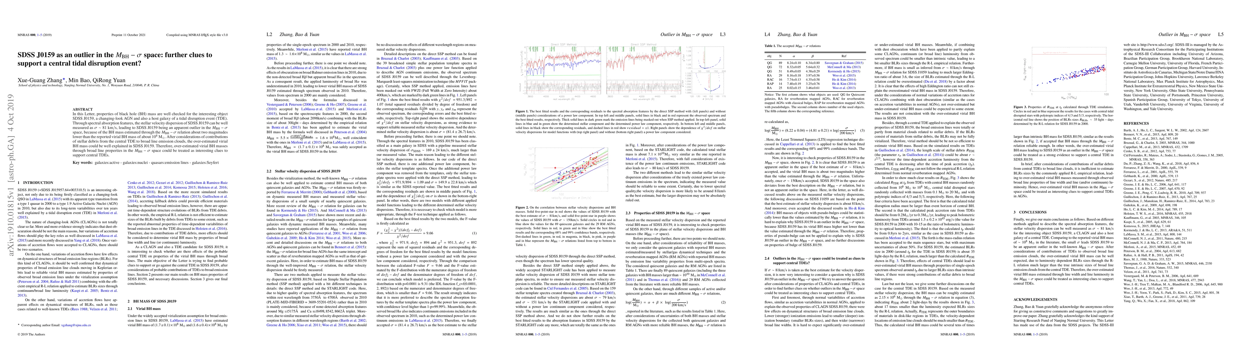 In this Letter, properties of black hole (BH) mass are well checked for the interesting object SDSS J0159, a changing-look AGN and also a host galaxy of a tidal disruption event (TDE). Through spectral absorption features, the stellar velocity dispersion of SDSS J0159 can be well measured as $\sigma\sim81~{\rm km/s}$, leading to SDSS J0159 being an apparent outlier in the \msig space, because of the BH mass estimated through the \msig relation about two magnitudes lower than the reported virial BH mass of about $10^8~{\rm M_\odot}$. After considerations of contributions of stellar debris from the central TDE to broad line emission clouds, the over-estimated virial BH mass could be well explained in SDSS J0159. Therefore, over-estimated virial BH masses through broad line properties in the \msig space could be treated as interesting clues to support central TDEs.
