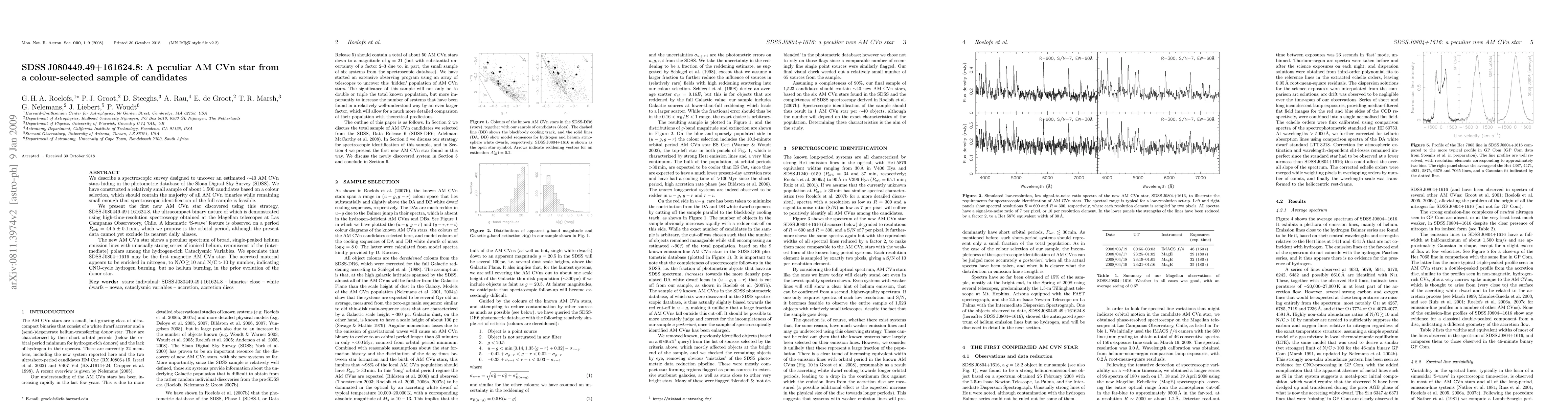 This paper reports the discovery of SDSS J080449.49+161624.8, a peculiar AM CVn star identified via a colour-selected survey from the SDSS database. The ultracompact binary nature is confirmed through high-time-resolution spectroscopy, revealing a potential 44.5-minute orbital period and a unique spectrum with strong ionised helium lines, suggesting it may be the first magnetic AM CVn star with enriched nitrogen in the accreted material.