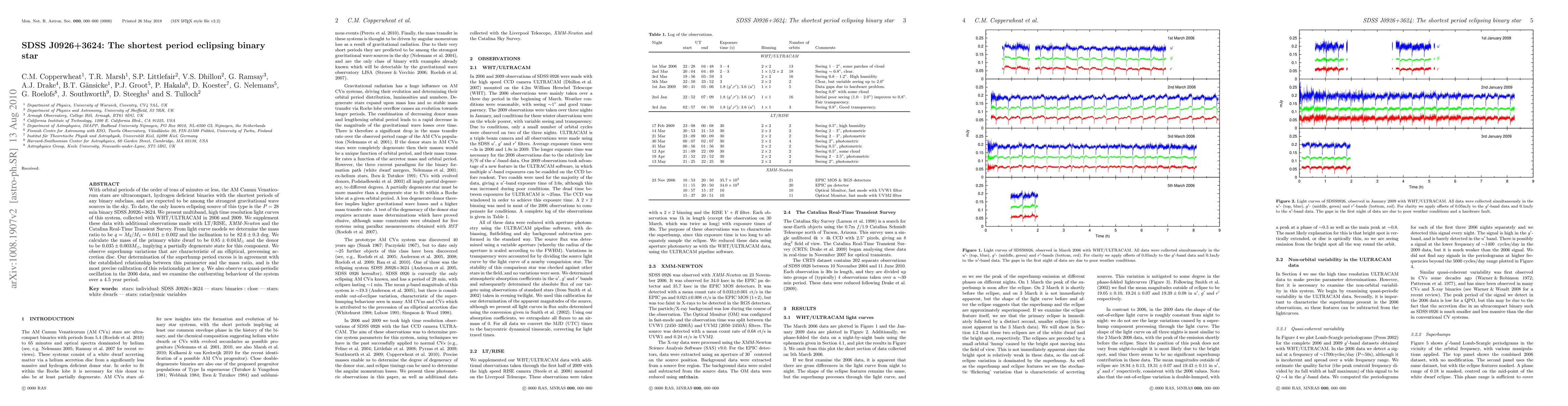 SDSS J0926+3624 is an ultracompact eclipsing binary with a 28-minute orbital period, the shortest among known AM Canum Venaticorum stars. Detailed light curve analysis reveals a mass ratio of 0.041 and an inclination of 82.6 degrees, supporting its classification as a strong gravitational wave source.
