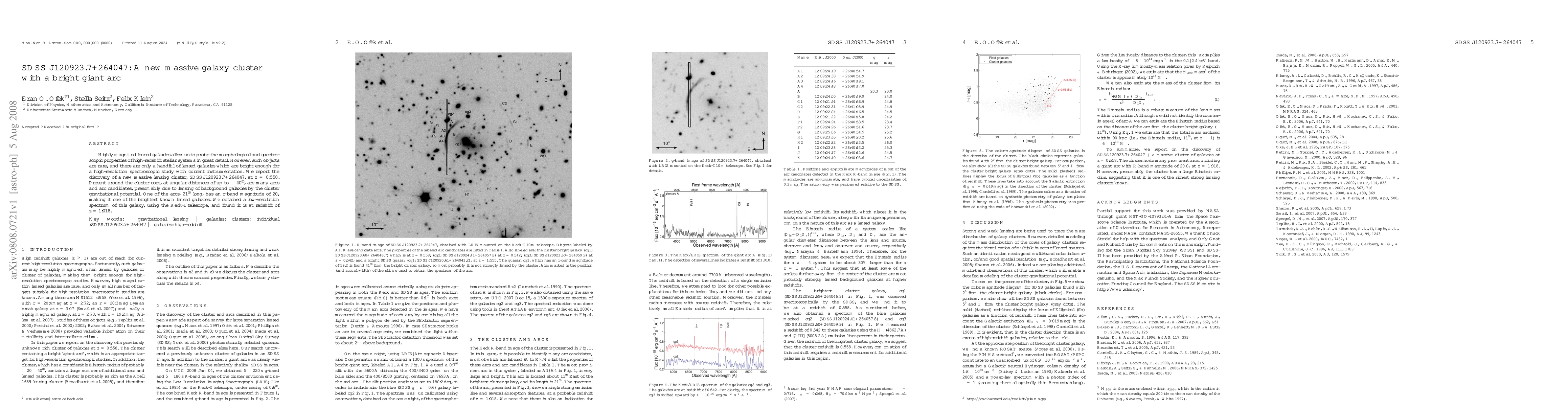Highly magnified lensed galaxies allow us to probe the morphological and spectroscopic properties of high-redshift stellar systems in great detail. However, such objects are rare, and there are only a handful of lensed galaxies which are bright enough for a high-resolution spectroscopic study with current instrumentation. We report the discovery of a new massive lensing cluster, SDSS J120923.7+264047, at z=0.558. Present around the cluster core, at angular distances of up to ~40'', are many arcs and arc candidates, presumably due to lensing of background galaxies by the cluster gravitational potential. One of the arcs, 21'' long, has an r-band magnitude of 20, making it one of the brightest known lensed galaxies. We obtained a low-resolution spectrum of this galaxy, using the Keck-I telescope, and found it is at redshift of z=1.018.