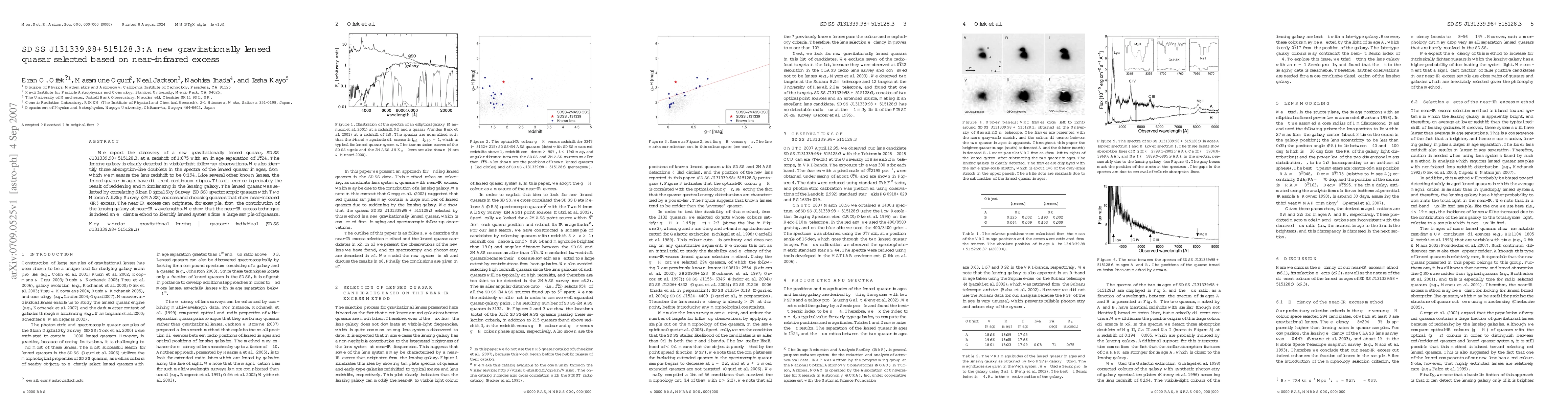 The paper reports the discovery of a new gravitationally lensed quasar, SDSS J131339.98+515128.3, identified through near-infrared excess, and confirms its lensing galaxy via visible-light observations. The near-IR excess technique was effective in identifying lensed quasars from large quasar samples.