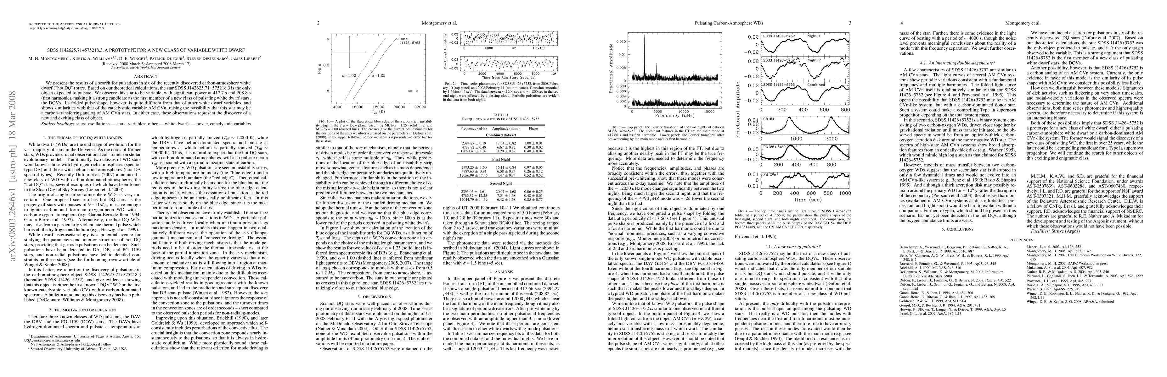 SDSS J142625.71+575218.3 is identified as a variable white dwarf with pulsations at 417.7 s and 208.8 s, suggesting it belongs to a new class of pulsating white dwarfs, the DQVs, potentially analogous to cataclysmic variable AM CVn stars.