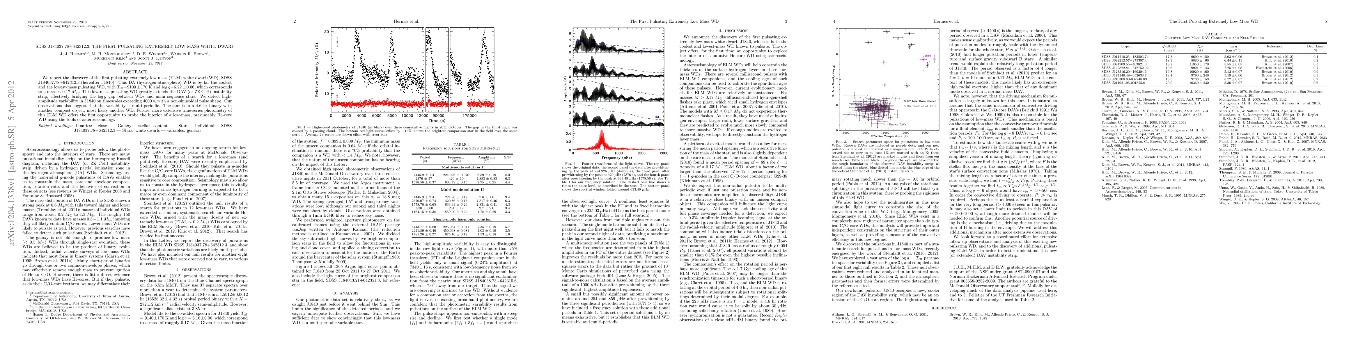 The paper reports the discovery of SDSS J184037.78+642312.3, the first pulsating extremely low mass white dwarf, which is the coolest and lowest-mass pulsating white dwarf known, bridging the gap between WDs and main sequence stars. Future asteroseismology studies could provide insights into the interior of low-mass white dwarfs.
