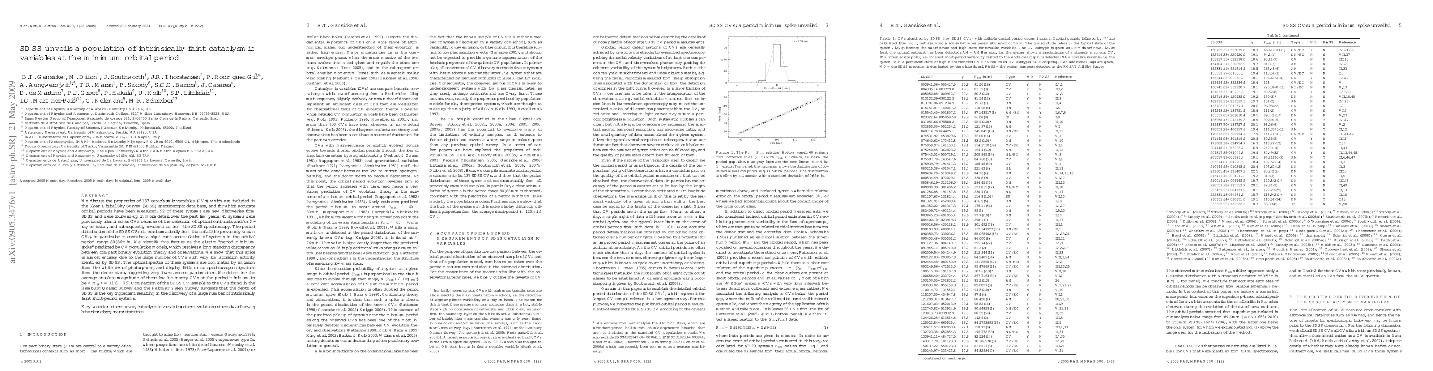 The Sloan Digital Sky Survey (SDSS) has identified 137 intrinsically faint cataclysmic variables (CVs) with precise orbital periods, revealing a significant "period minimum spike" in the 80-86 minute range, resolving a long-standing discrepancy in compact binary evolution theory. The low-luminosity CVs discovered by SDSS suggest very low-mass companion stars, with an average absolute magnitude of <M_g>=11.6+-0.7.
