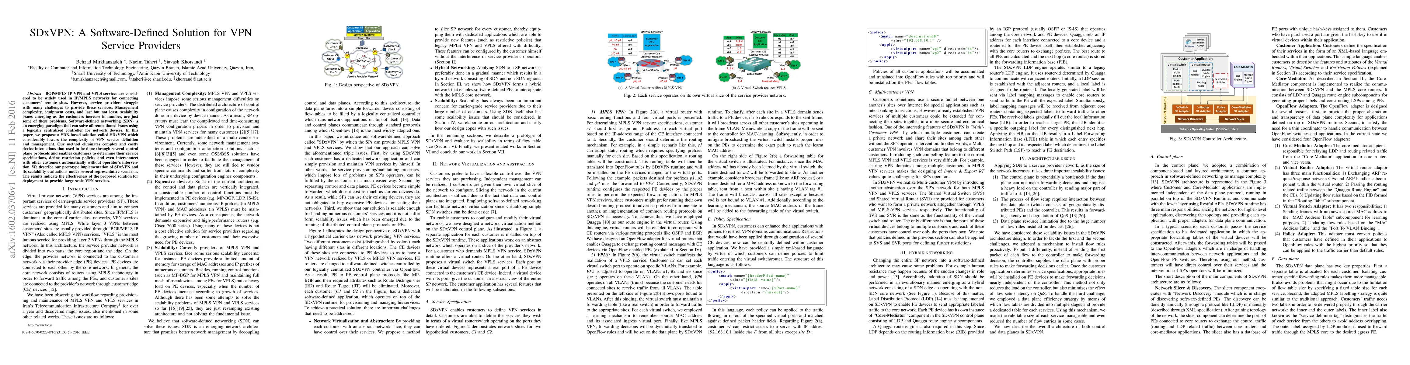 The paper proposes SDxVPN, a software-defined networking solution to simplify VPN service management for providers, reducing complexity and costs. The prototype implementation demonstrates the solution's scalability and effectiveness for large-scale VPN services.