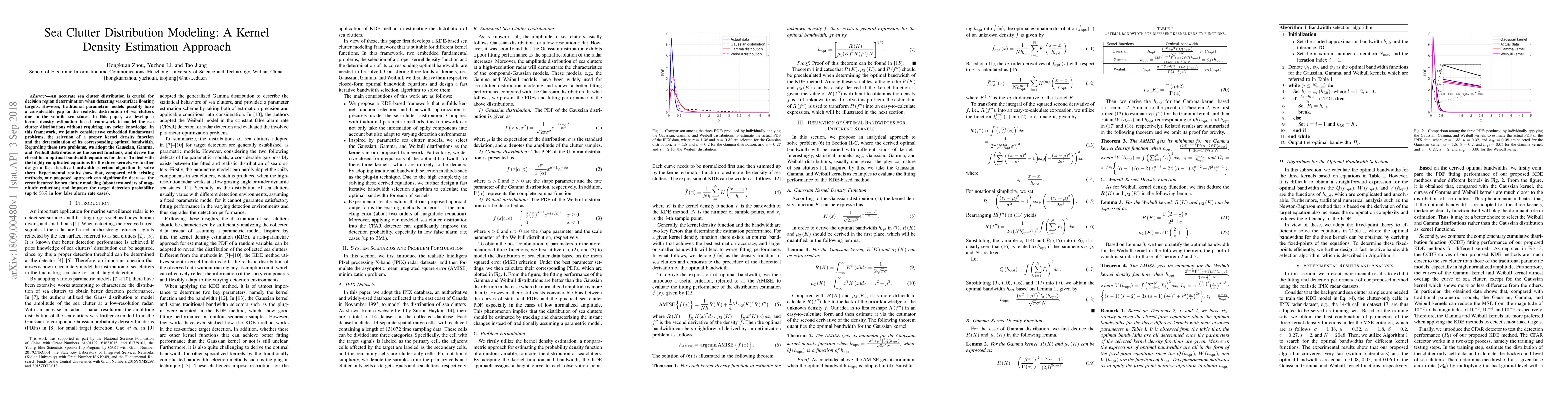 This paper proposes a kernel density estimation framework to model sea clutter distributions without prior knowledge, addressing the selection of kernel functions and optimal bandwidth determination. The method significantly reduces modeling error and improves target detection probability by up to 36% in low false alarm scenarios.