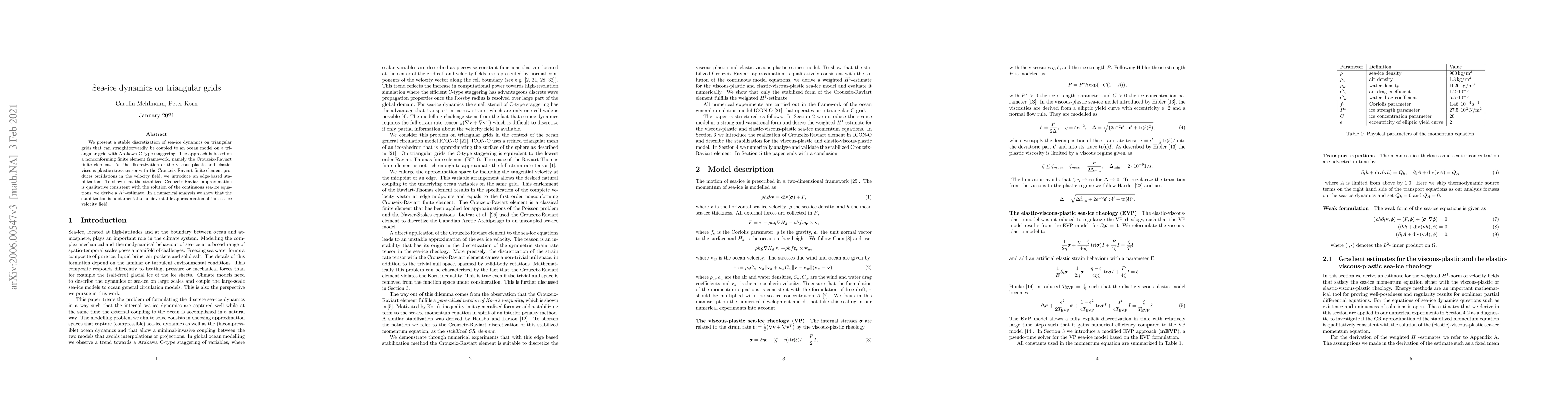 Researchers develop a stable numerical method for simulating sea-ice dynamics on triangular grids, using a finite element framework with edge-based stabilization to accurately capture the complex interactions between sea ice and ocean currents.