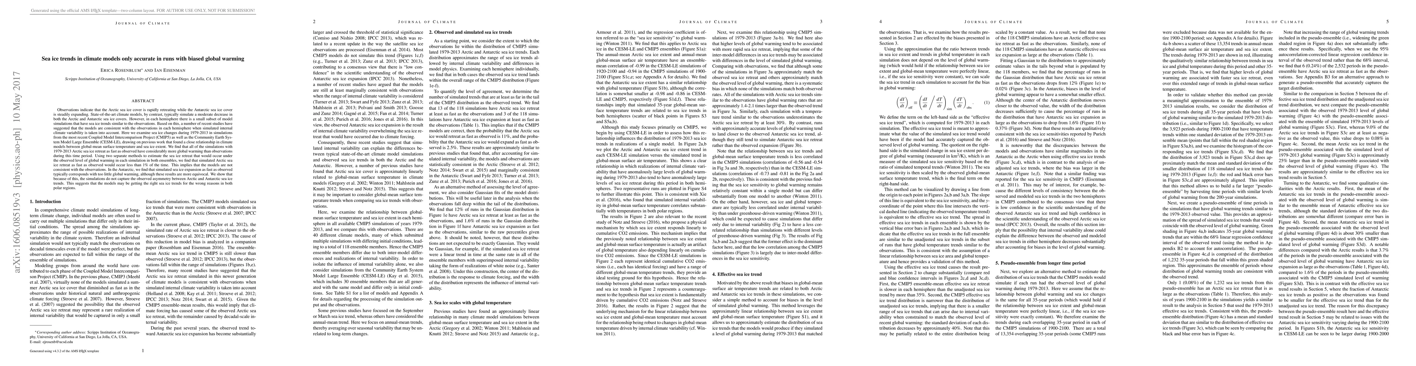 The paper finds that climate models simulate sea ice trends similar to observations in a small subset of simulations that exhibit biased global warming. It concludes that models are not consistent with observed sea ice trends due to the mismatch between the level of global warming in simulations and observations.