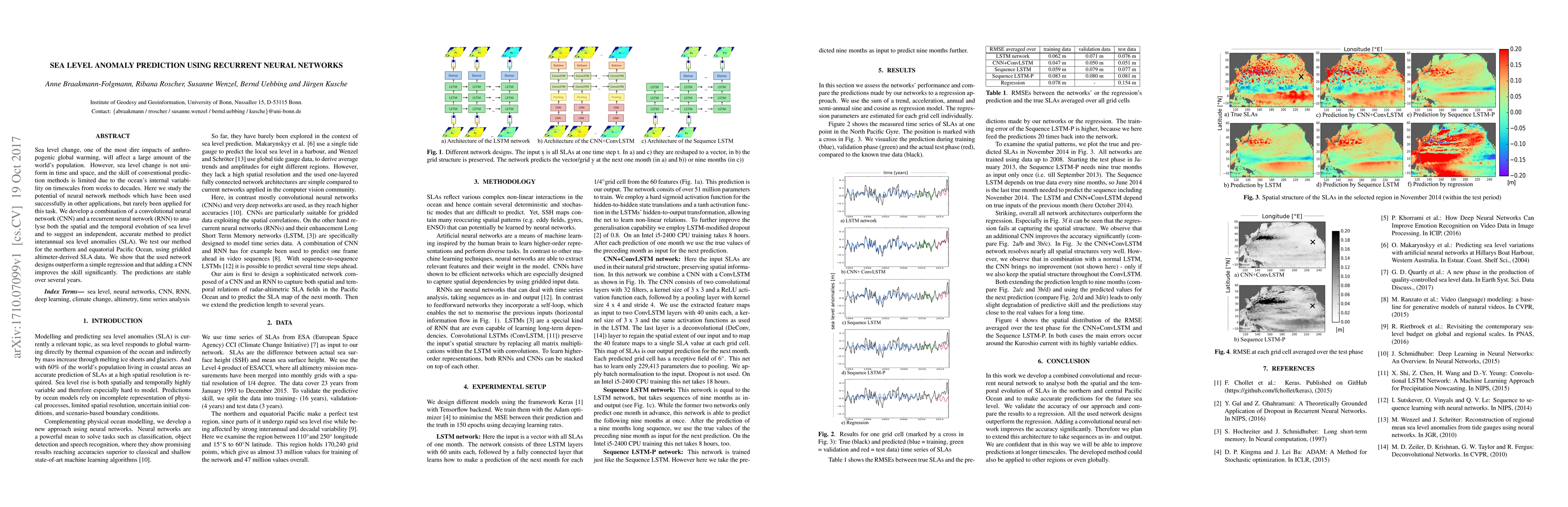 This research explores the application of a combined convolutional and recurrent neural network (CNN-RNN) to predict sea level anomalies (SLA) in the northern and equatorial Pacific Ocean. The study demonstrates that this neural network approach outperforms conventional regression methods, particularly when incorporating a CNN, leading to more accurate and stable predictions over time.