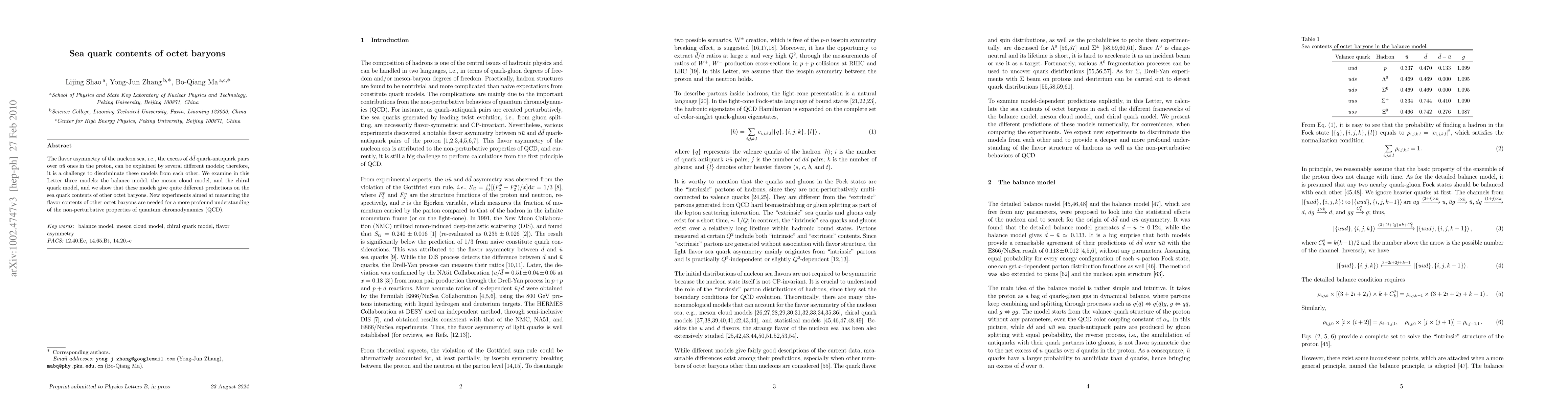 This paper investigates the flavor asymmetry of sea quark contents in octet baryons, comparing predictions from three models: the balance model, the meson cloud model, and the chiral quark model. It emphasizes the need for new experimental data to distinguish between these models and to better understand QCD's non-perturbative properties.