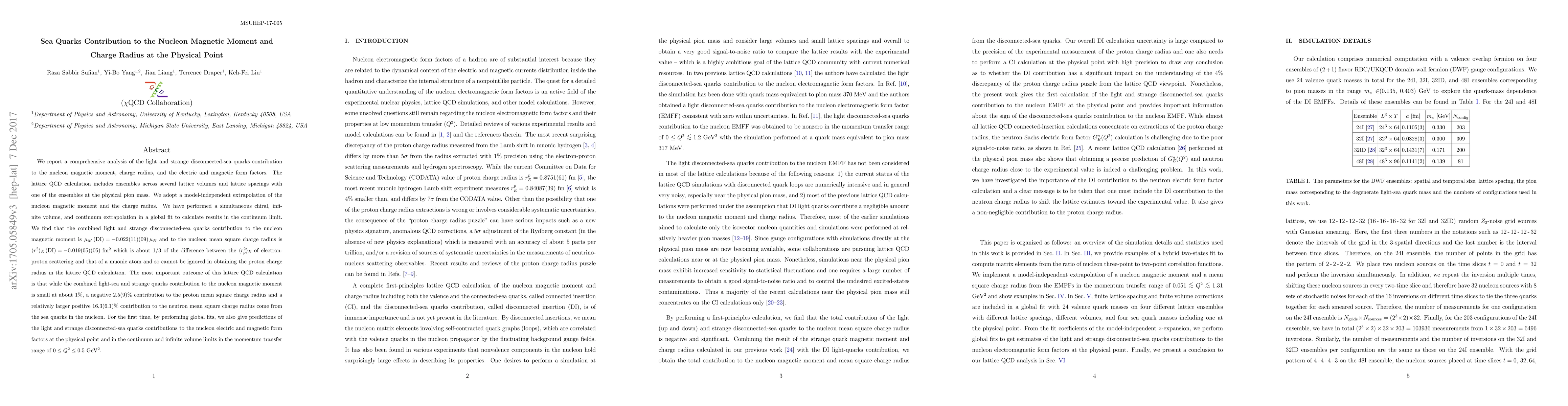 We report a comprehensive analysis of the light and strange disconnected-sea quarks contribution to the nucleon magnetic moment, charge radius, and the electric and magnetic form factors. The lattice QCD calculation includes ensembles across several lattice volumes and lattice spacings with one of the ensembles at the physical pion mass. We adopt a model-independent extrapolation of the nucleon magnetic moment and the charge radius. We have performed a simultaneous chiral, infinite volume, and continuum extrapolation in a global fit to calculate results in the continuum limit. We find that the combined light and strange disconnected-sea quarks contribution to the nucleon magnetic moment is $\mu_M\,(\text{DI})=-0.022(11)(09)\,\mu_N$ and to the nucleon mean square charge radius is $\langle r^2\rangle_E\,\text{(DI)}=-0.019(05)(05)$ fm$^2$ which is about $1/3$ of the difference between the $\langle r_p^2\rangle_E$ of electron-proton scattering and that of muonic atom and so cannot be ignored in obtaining the proton charge radius in the lattice QCD calculation. The most important outcome of this lattice QCD calculation is that while the combined light-sea and strange quarks contribution to the nucleon magnetic moment is small at about $1\%$, a negative $2.5(9)\%$ contribution to the proton mean square charge radius and a relatively larger positive $16.3(6.1)\%$ contribution to the neutron mean square charge radius come from the sea quarks in the nucleon. For the first time, by performing global fits, we also give predictions of the light and strange disconnected-sea quarks contributions to the nucleon electric and magnetic form factors at the physical point and in the continuum and infinite volume limits in the momentum transfer range of $0\leq Q^2\leq 0.5$ GeV$^2$.