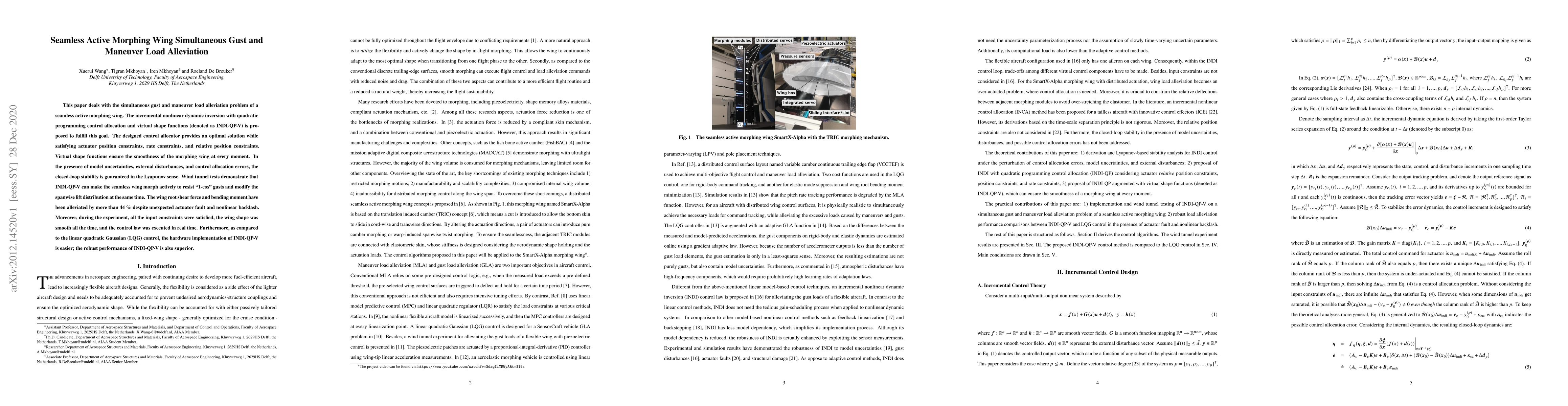 This paper proposes an INDI-QP-V control strategy for a seamless active morphing wing to alleviate gust and maneuver loads, ensuring optimal control while maintaining wing shape smoothness and satisfying constraints. Wind tunnel tests show significant load reduction and real-time performance, outperforming LQG control.