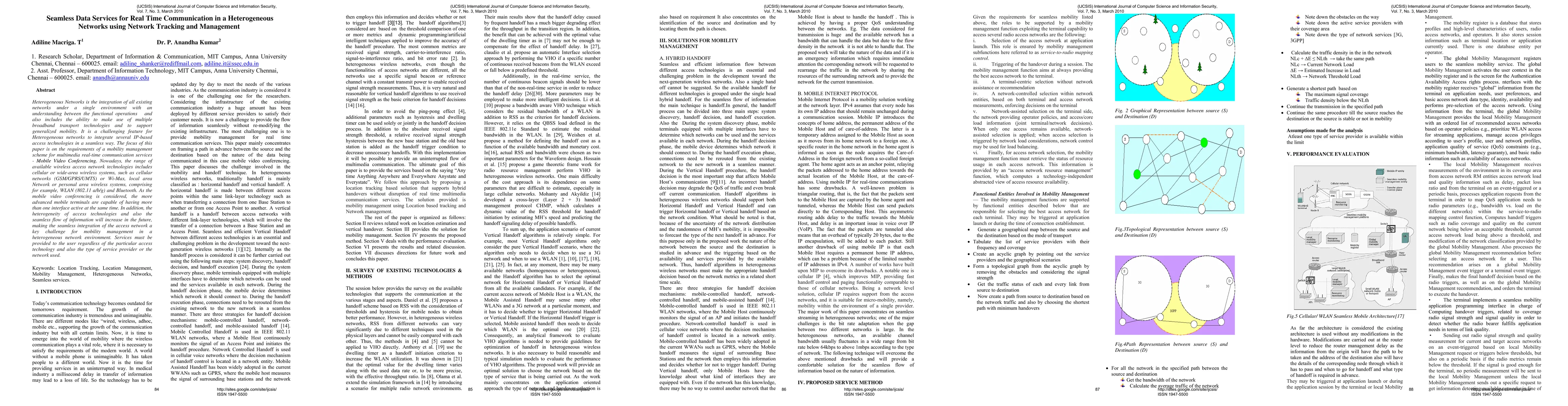 Heterogeneous Networks is the integration of all existing networks under a single environment with an understanding between the functional operations and also includes the ability to make use of multiple broadband transport technologies and to support generalized mobility. It is a challenging feature for Heterogeneous networks to integrate several IP-based access technologies in a seamless way. The focus of this paper is on the requirements of a mobility management scheme for multimedia real-time communication services - Mobile Video Conferencing. Nowadays, the range of available wireless access network technologies includes cellular or wide-area wireless systems, such as cellular networks (GSM/GPRS/UMTS) or Wi-Max, local area Network or personal area wireless systems, comprising for example, WLAN (802.11 a/b/g) and Bluetooth. As the mobile video conferencing is considered, the more advanced mobile terminals are capable of having more than one interface active at the same time. In addition, the heterogeneity of access technologies and also the seamless flow of information will increase in the future, making the seamless integration of the access network a key challenge for mobility management in a heterogeneous network environment. Services must be provided to the user regardless of the particular access technology and also the type of service provider or the network used.
