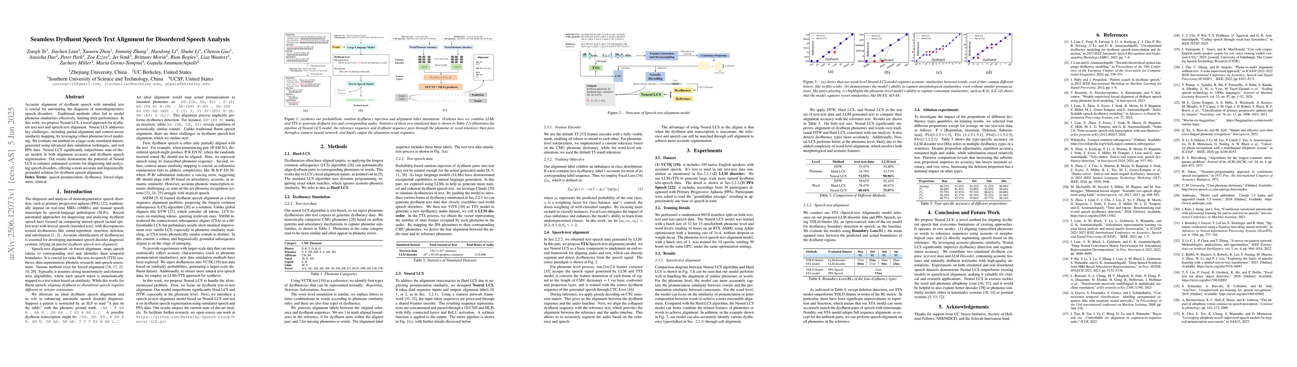 The research introduces Neural LCS, a novel method for aligning dysfluent speech with text, addressing challenges in diagnosing neurodegenerative speech disorders. Neural LCS, utilizing phoneme-level modeling, outperforms existing models in alignment accuracy and dysfluent speech segmentation on both simulated and real PPA datasets, promising improved automated diagnosis systems.