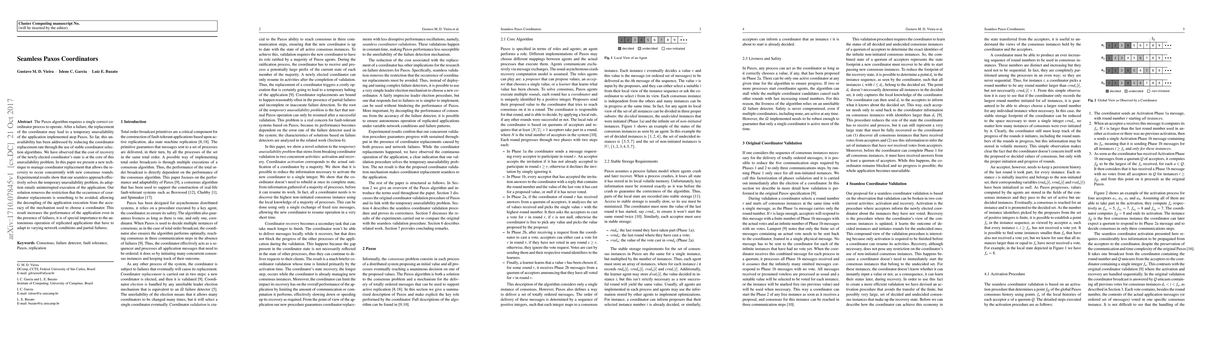 The Paxos algorithm requires a single correct coordinator process to operate. After a failure, the replacement of the coordinator may lead to a temporary unavailability of the application implemented atop Paxos. So far, this unavailability has been addressed by reducing the coordinator replacement rate through the use of stable coordinator selection algorithms. We have observed that the cost of recovery of the newly elected coordinator's state is at the core of this unavailability problem. In this paper we present a new technique to manage coordinator replacement that allows the recovery to occur concurrently with new consensus rounds. Experimental results show that our seamless approach effectively solves the temporary unavailability problem, its adoption entails uninterrupted execution of the application. Our solution removes the restriction that the occurrence of coordinator replacements is something to be avoided, allowing the decoupling of the application execution from the accuracy of the mechanism used to choose a coordinator. This result increases the performance of the application even in the presence of failures, it is of special importance to the autonomous operation of replicated applications that have to adapt to varying network conditions and partial failures.