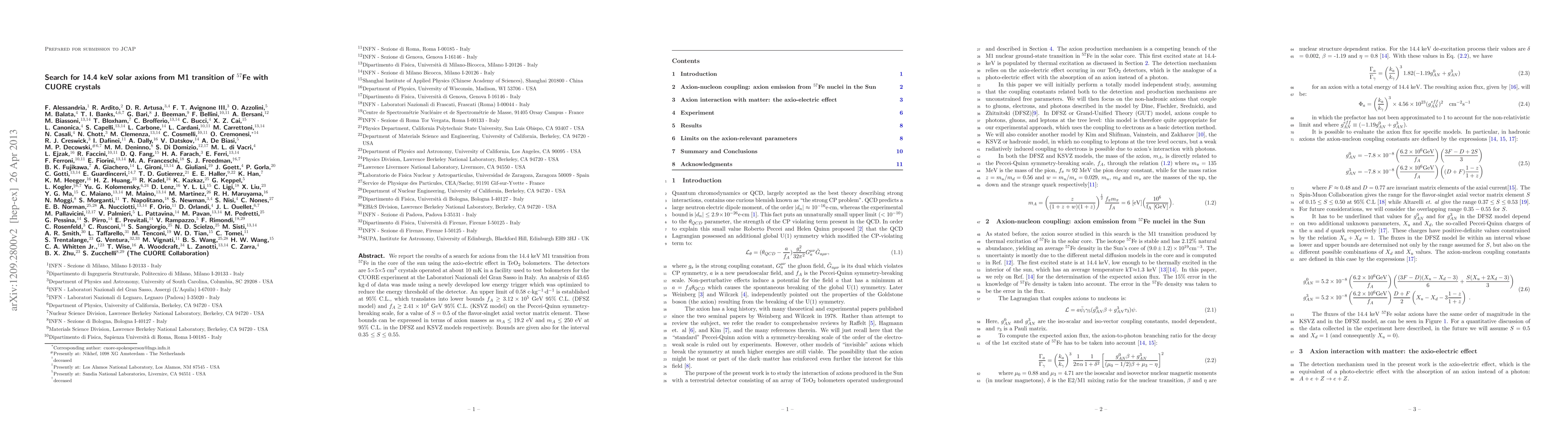 We report the results of a search for axions from the 14.4 keV M1 transition from Fe-57 in the core of the sun using the axio-electric effect in TeO2 bolometers. The detectors are 5x5x5 cm3 crystals operated at about 10 mK in a facility used to test bolometers for the CUORE experiment at the Laboratori Nazionali del Gran Sasso in Italy. An analysis of 43.65 kg d of data was made using a newly developed low energy trigger which was optimized to reduce the detectors energy threshold. An upper limit of 0.63 c kg-1 d-1 was established at 95% C.L.. From this value, a lower bound at 95% C.L. was placed on the Peccei-Quinn energy scale of fa >= 0.76 10**6 GeV for a value of S=0.55 for the flavor-singlet axial vector matrix element. Bounds are given for the interval 0.15 < S < 0.55.