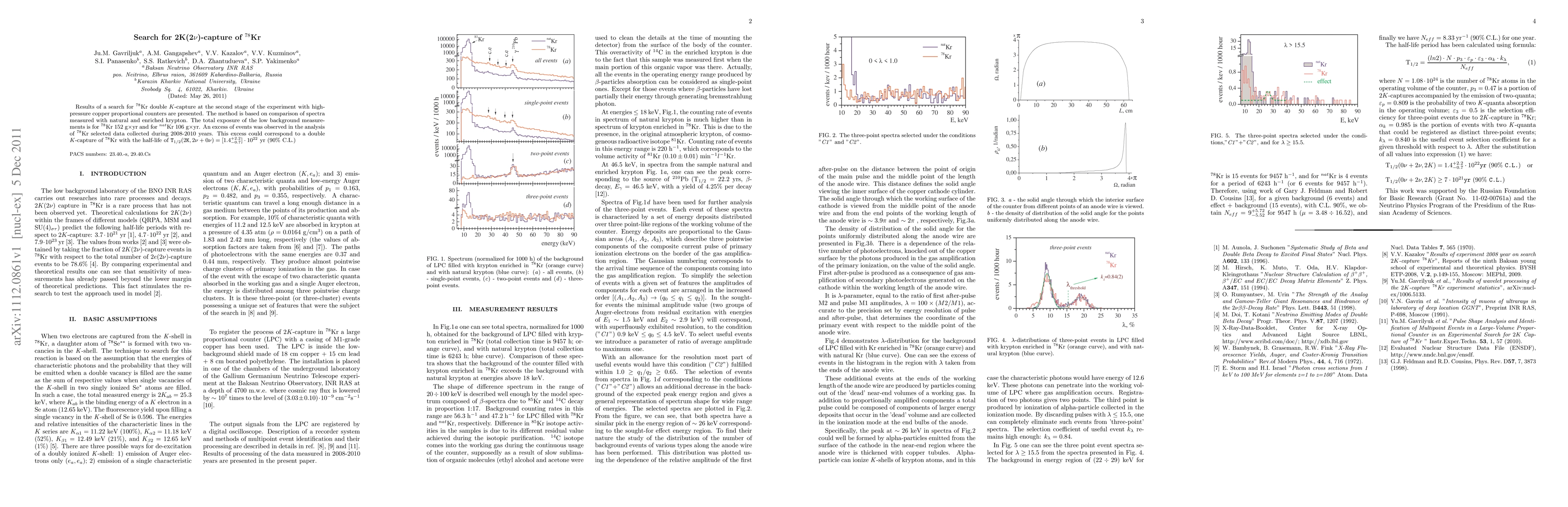Researchers detected a possible double K-capture of Kr-78 with a half-life of 1.4e22 years, exceeding natural background levels in high-pressure copper counters. The observation has sparked interest in the study of rare nuclear reactions.