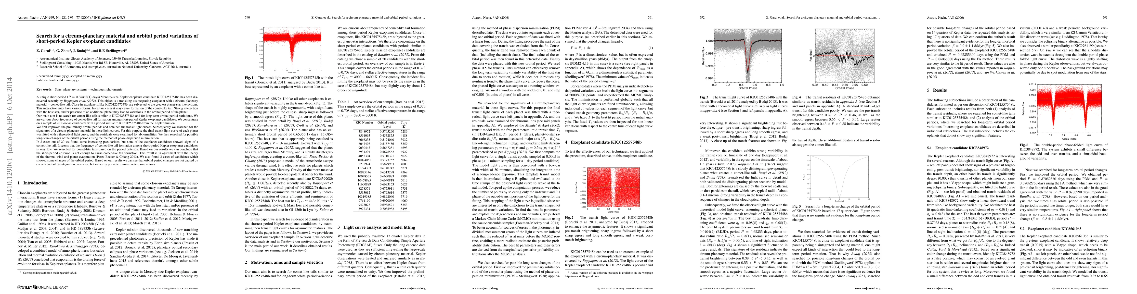 A unique short-period Mercury-size Kepler exoplanet candidate KIC012557548b has been discovered recently by Rappaport et al. (2012). This object is a transiting disintegrating exoplanet with a circum-planetary material - comet-like tail. Close-in exoplanets, like KIC012557548b, are subjected to the greatest planet-star interactions. This interaction may have various forms. In certain cases it may cause formation of the comet-like tail. Strong interaction with the host star, and/or presence of an additional planet may lead to variations in the orbital period of the planet. Our main aim is to search for comet-like tails similar to KIC012557548b and for long-term orbital period variations. We are curious about frequency of comet-like tail formation among short-period Kepler exoplanet candidates. We concentrate on a sample of 20 close-in candidates with a period similar to KIC012557548b from the Kepler mission.