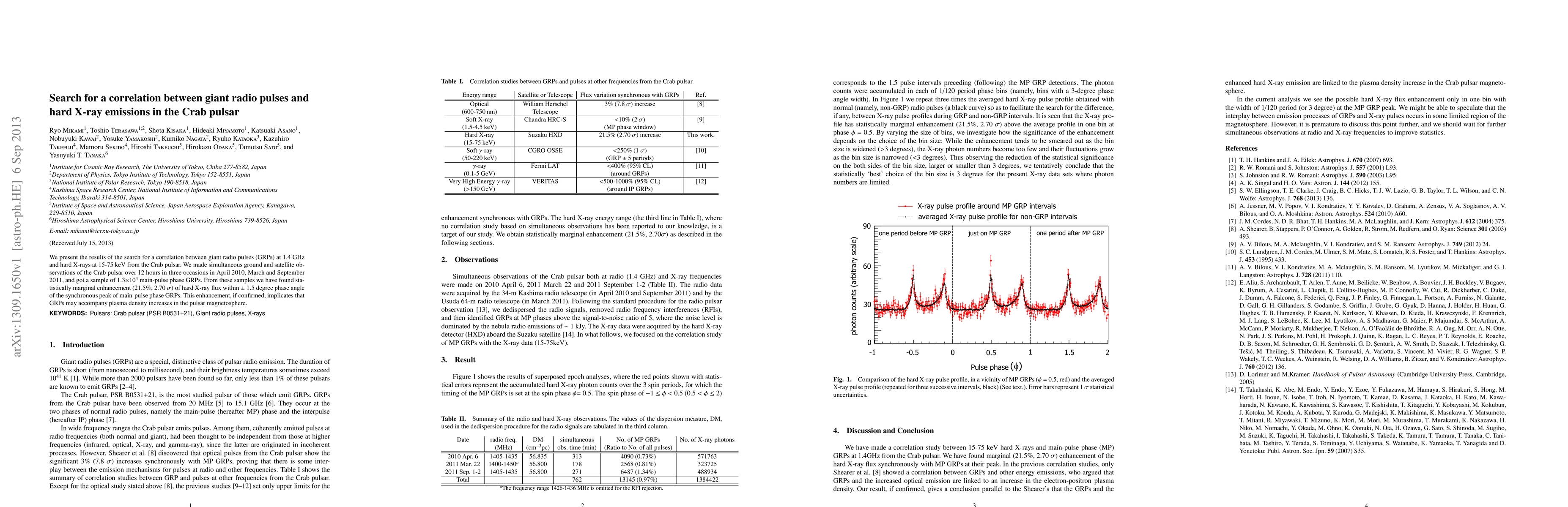 Researchers found a statistically significant correlation between giant radio pulses in the Crab pulsar and hard X-ray emissions, suggesting plasma density increases in the magnetosphere.