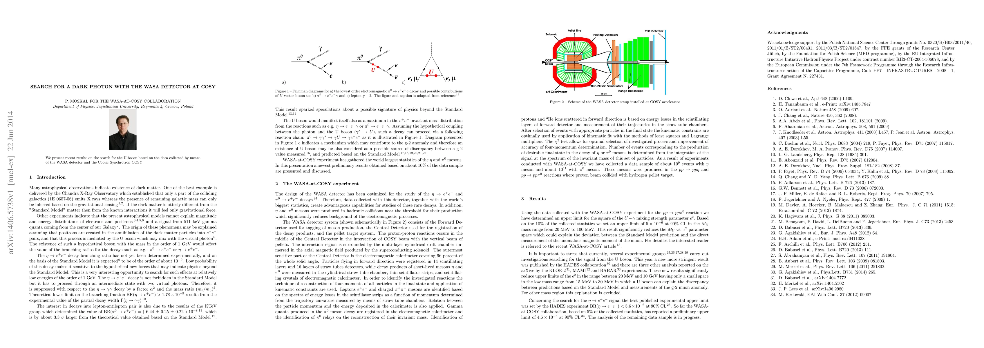 We present recent results on the search for the U boson based on the data collected by means of the WASA detector and the Cooler Synchrotron COSY.