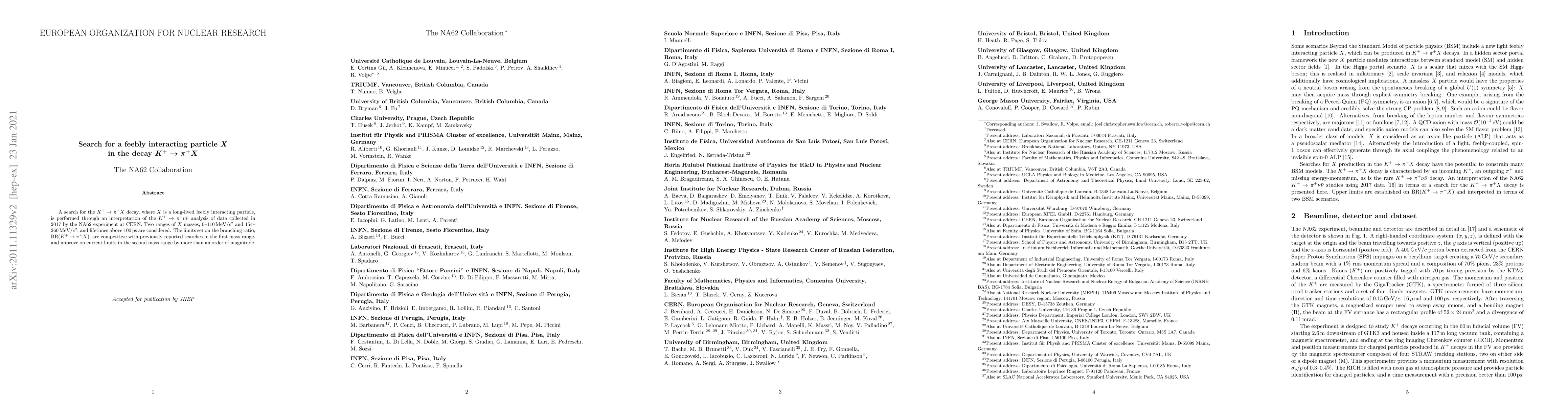 The NA62 experiment at CERN searched for a long-lived feebly interacting particle $X$ in the decay $K^{+}\rightarrow\pi^{+}X$, setting competitive limits on the branching ratio in two mass ranges. The results notably improve previous limits by over an order of magnitude in the higher mass range.
