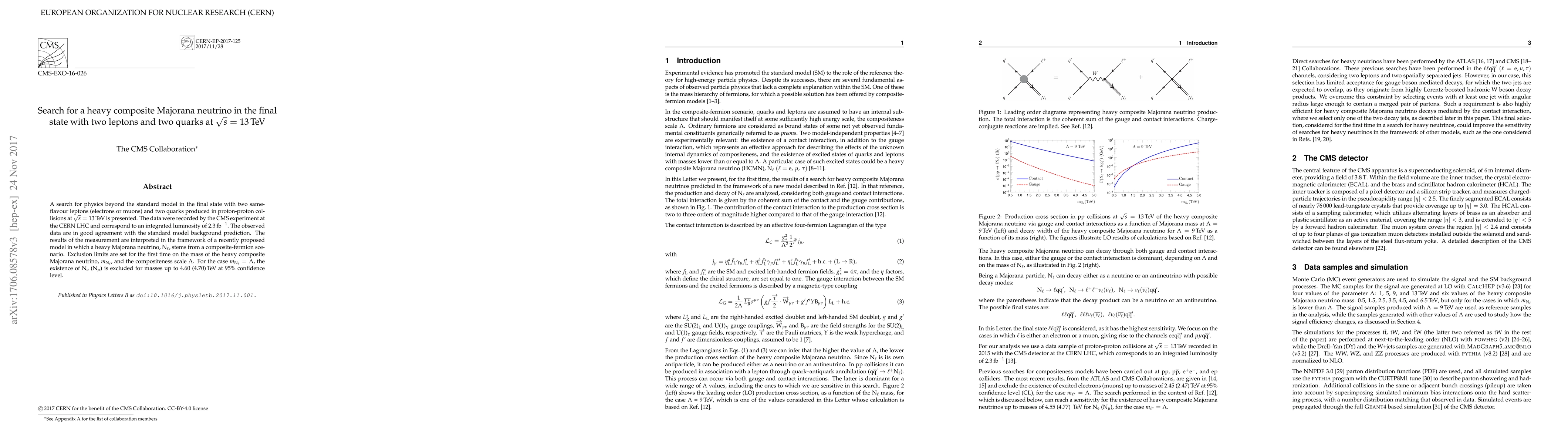A search for physics beyond the standard model in the final state with two same-flavour leptons (electrons or muons) and two quarks produced in proton-proton collisions at sqrt(s) = 13 TeV is presented. The data were recorded by the CMS experiment at the CERN LHC and correspond to an integrated luminosity of 2.3 inverse femtobarns. The observed data are in good agreement with the standard model background prediction. The results of the measurement are interpreted in the framework of a recently proposed model in which a heavy Majorana neutrino, N(l), stems from a composite-fermion scenario. Exclusion limits are set for the first time on the mass of the heavy composite Majorana neutrino, m[N(l)], and the compositeness scale Lambda. For the case m[N(l)] = Lambda, the existence of N(e) (N(mu)) is excluded for masses up to 4.60 (4.70) TeV at 95% confidence level.
