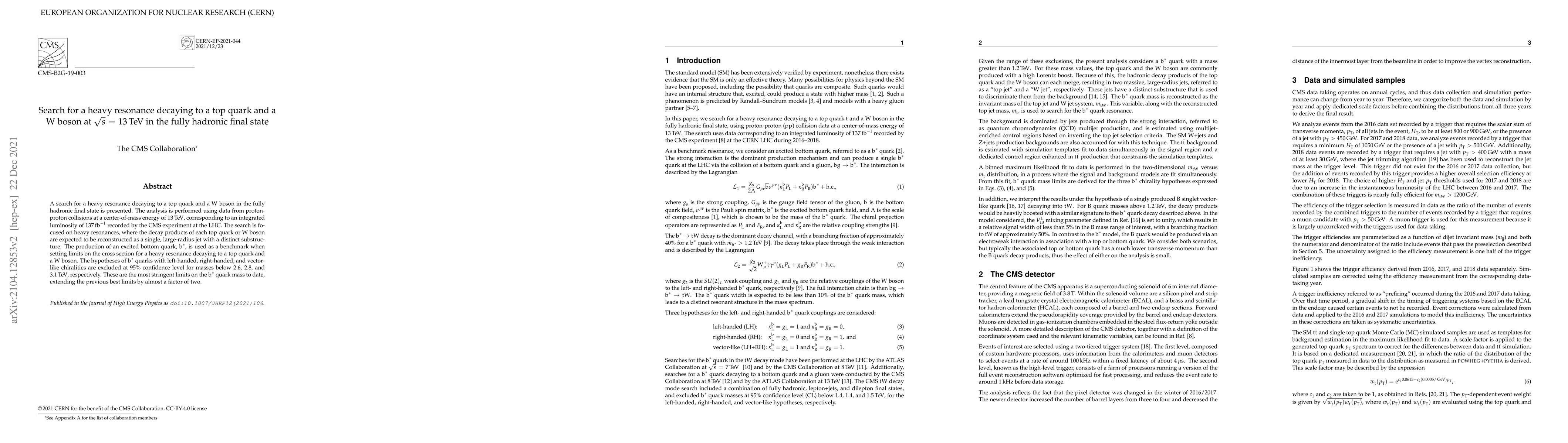 The CMS experiment at the LHC sets new limits on heavy resonances decaying to a top quark and W boson, excluding excited bottom quarks with masses below 2.6 TeV.