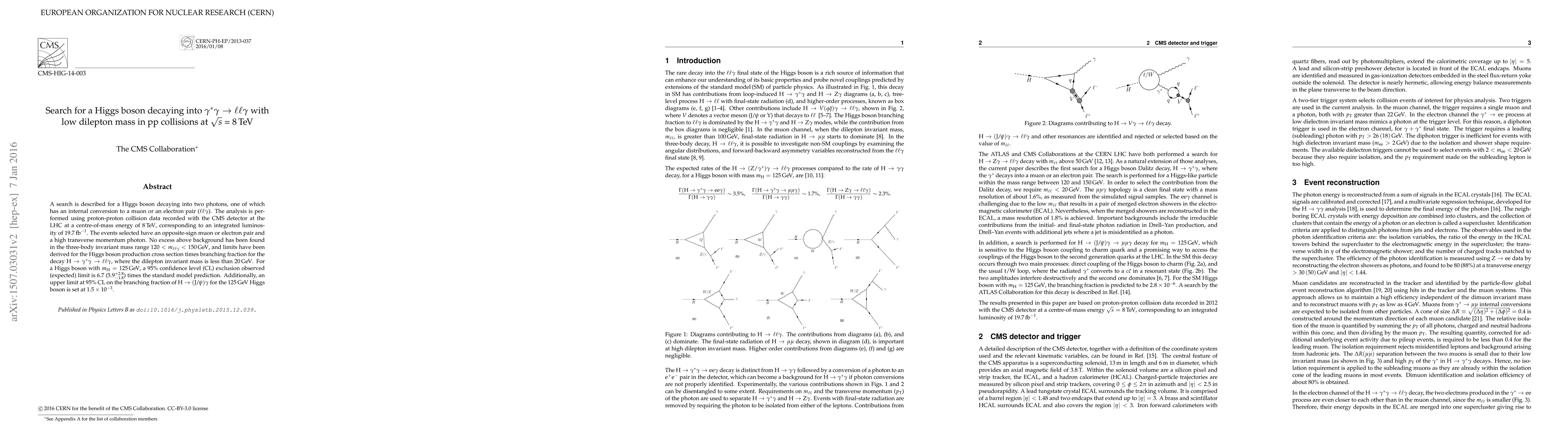 A search is described for a Higgs boson decaying into two photons, one of which has an internal conversion to a muon or an electron pair (ll gamma). The analysis is performed using proton-proton collision data recorded with the CMS detector at the LHC at a centre-of-mass energy of 8 TeV, corresponding to an integrated luminosity of 19.7 inverse femtobarns. The events selected have an opposite-sign muon or electron pair and a high transverse momentum photon. No excess above background has been found in the three-body invariant mass range 120 < m[ll gamma] < 150 GeV, and limits have been derived for the Higgs boson production cross section times branching fraction for the decay H to gamma* gamma to ll gamma, where the dilepton invariant mass is less than 20 GeV. For a Higgs boson with m[H] = 125 GeV, a 95% confidence level (CL) exclusion observed (expected) limit is 6.7 (5.9 +2.8/-1.8) times the standard model prediction. Additionally, an upper limit at 95% CL on the branching fraction of H to J/Psi gamma for the 125 GeV Higgs boson is set at 1.5E-3.
