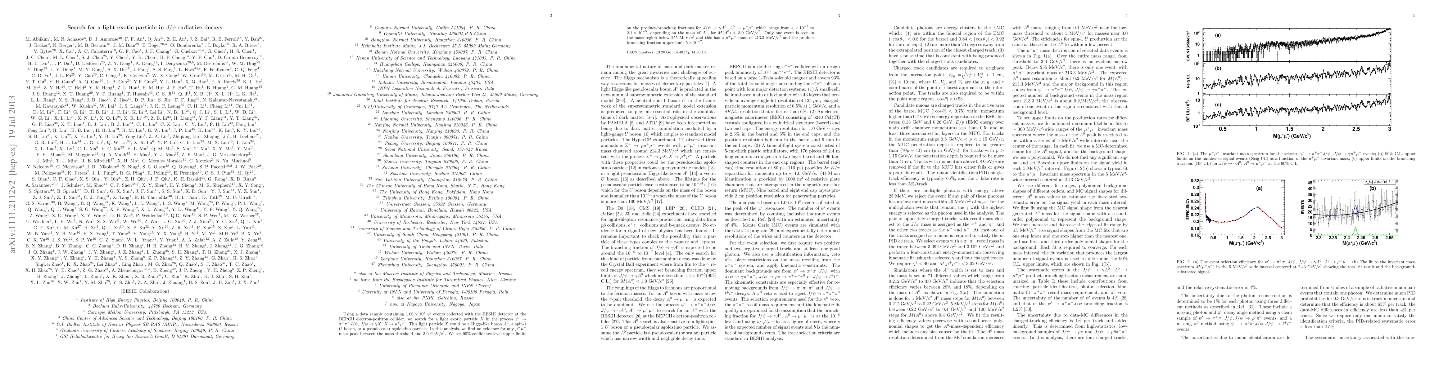 The study, using data from BESIII detector, investigates for a light exotic particle X in J/psi radiative decays but finds no evidence of such a particle between mass threshold and 3.0 GeV/c^2. Upper limits on product-branching fractions for J/psi -> gamma X, X -> mu+ mu- are set, ranging from 4x10^{-7} to 2.1x10^{-5}, depending on the mass of a hypothetical Higgs-like boson A^0, U boson, or sgoldstino particle.