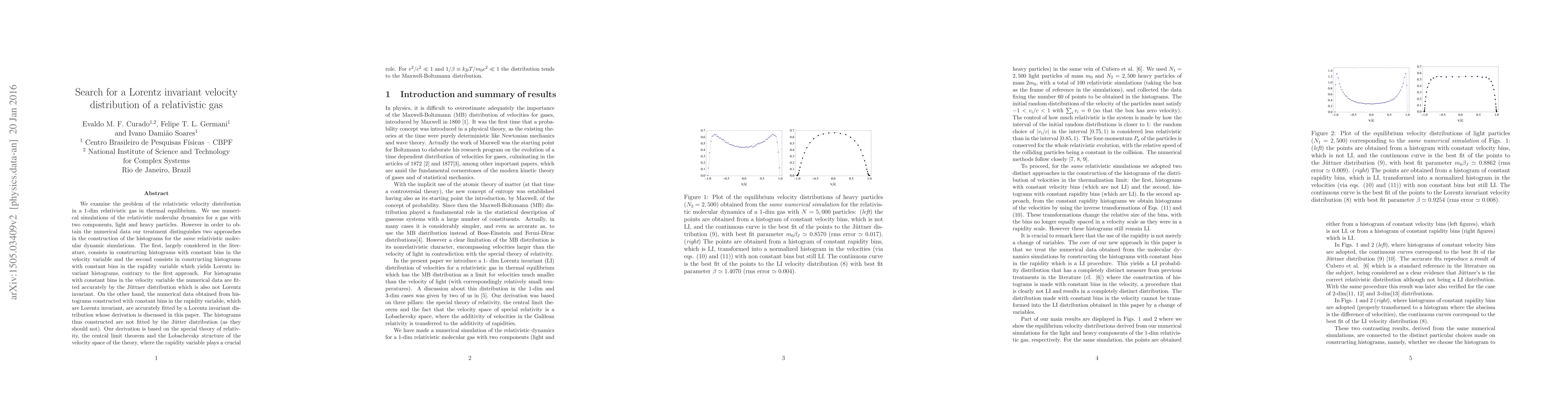 We examine numerically and analytically the problem of the relativistic velocity distribution in a 1-dim relativistic gas in thermal equilibrium. Our derivation is based on the special theory of relativity, the central limit theorem and the Lobachevsky structure of the velocity space of the theory, where the rapidity variable plays a crucial role. For v^2/c^2 << 1 and 1/\beta = k_B T/ m_0 c^2 << 1 the distribution tends to the Maxwell-Boltzmann distribution.