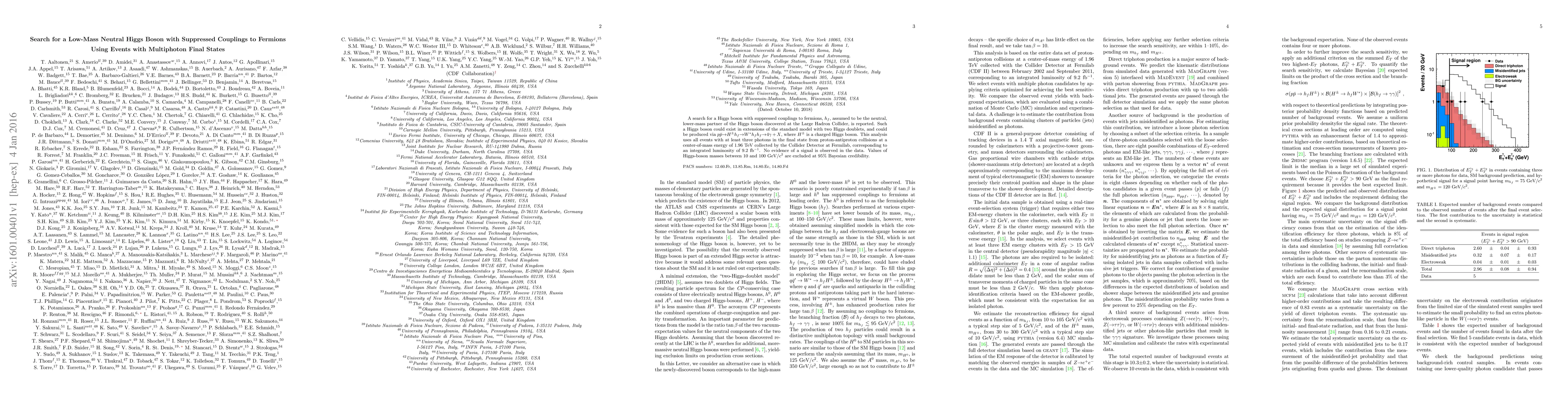 This study investigates the existence of a low-mass, fermion-suppressing Higgs boson (h_f) via multiphoton final states in 1.96 TeV proton-antiproton collisions at Fermilab. No evidence of such a Higgs boson was found, leading to the exclusion of h_f masses between 10 and 100 GeV/c^2 at 95% confidence level.