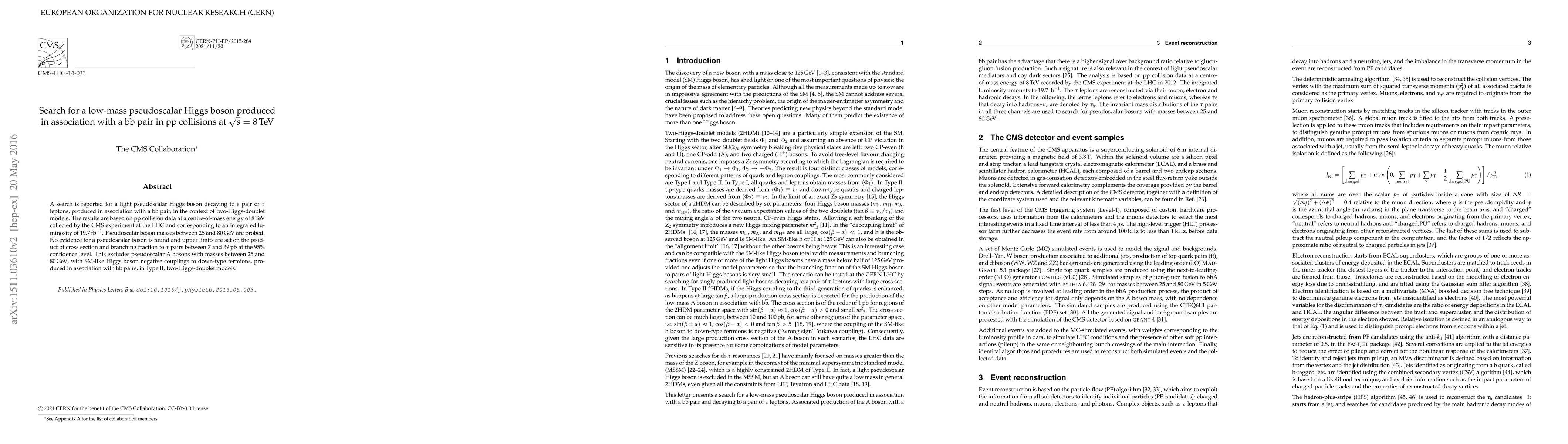 A search is reported for a light pseudoscalar Higgs boson decaying to a pair of tau leptons, produced in association with a b b-bar pair, in the context of two-Higgs-doublet models. The results are based on pp collision data at a centre-of-mass energy of 8 TeV collected by the CMS experiment at the LHC and corresponding to an integrated luminosity of 19.7 inverse femtobarns. Pseudoscalar boson masses between 25 and 80 GeV are probed. No evidence for a pseudoscalar boson is found and upper limits are set on the production cross section times branching fraction to tau pairs between 7 and 39 pb at the 95% confidence level. This excludes pseudoscalar A bosons with masses between 25 and 80 GeV, with standard model-like Higgs boson negative couplings to down-type fermions, produced in association with b b-bar pairs, in Type-II, two-Higgs-doublet models.