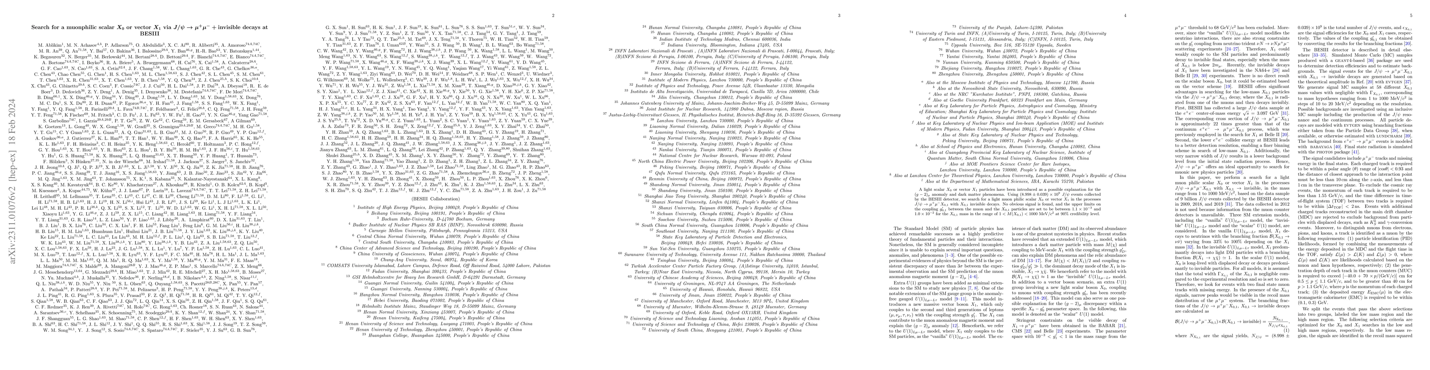 the processes $J/\psi\to\mu^+\mu^- X_{0,1}$ with $X_{0,1}$ invisible decays. No