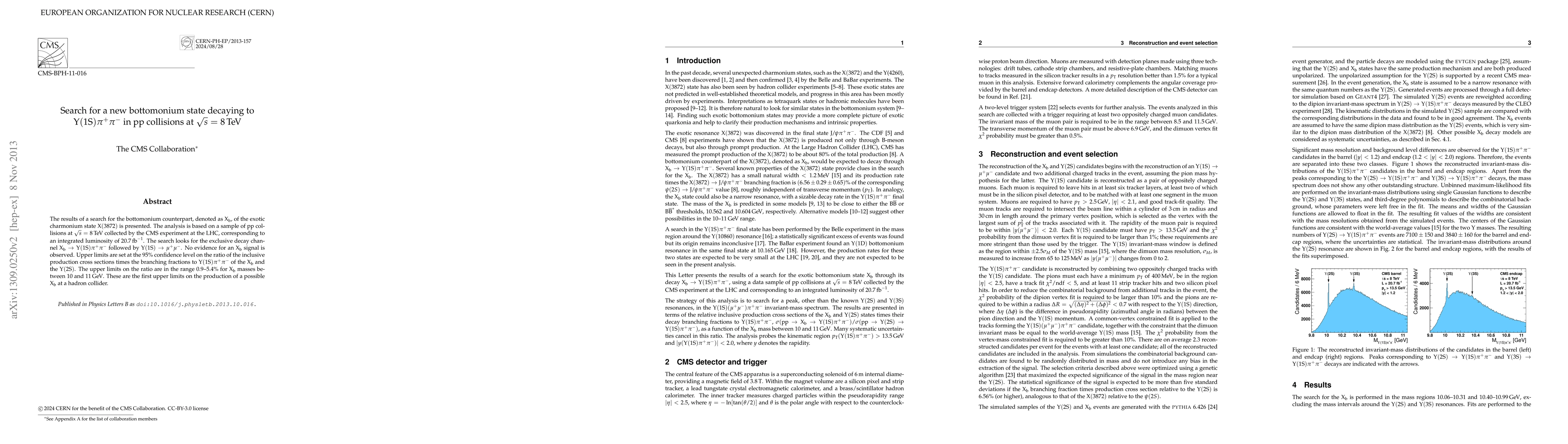 The results of a search for the bottomonium counterpart, denoted as Xb, of the exotic charmonium state X(3872) is presented. The analysis is based on a sample of pp collisions at sqrt(s) = 8 TeV collected by the CMS experiment at the LHC, corresponding to an integrated luminosity of 20.7 inverse femtobarns. The search looks for the exclusive decay channel Xb to Upsilon(1S) pi+ pi- followed by Upsilon(1S) to mu+ mu-. No evidence for an Xb signal is observed. Upper limits are set at the 95% confidence level on the ratio of the inclusive production cross sections times the branching fractions to Upsilon(1S) pi+ pi- of the Xb and the Upsilon(2S). The upper limits on the ratio are in the range 0.9-5.4% for Xb masses between 10 and 11 GeV. These are the first upper limits on the production of a possible Xb at a hadron collider.