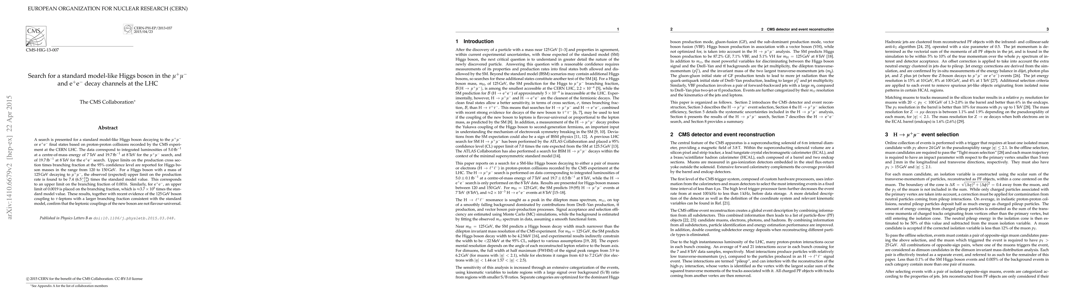 A search is presented for a standard model-like Higgs boson decaying to muon pair or electron pair final states based on proton-proton collisions recorded by the CMS experiment at the CERN LHC. The data correspond to integrated luminosities of 5.0 inverse femtobarns at a centre-of-mass energy of 7 TeV and 19.7 inverse femtobarns at 8 TeV for the muon search, and of 19.7 inverse femtobarns at 8 TeV for the electron search. Upper limits on the production cross section times branching fraction at the 95% confidence level are reported for Higgs boson masses in the range from 120 to 150 GeV. For a Higgs boson with a mass of 125 GeV decaying to muons, the observed (expected) upper limit on the production rate is found to be 7.4 (6.5 +2.8 -1.9) times the standard model value. This corresponds to an upper limit on the branching fraction of 0.0016. Similarly, for electrons, an upper limit of 0.0019 is placed on the branching fraction, which is about 3.7 E5 times the standard model value. These results, together with recent evidence of the 125 GeV boson coupling to tau-leptons with a larger branching fraction consistent with the standard model, confirm that the leptonic couplings of the new boson are not flavour-universal.