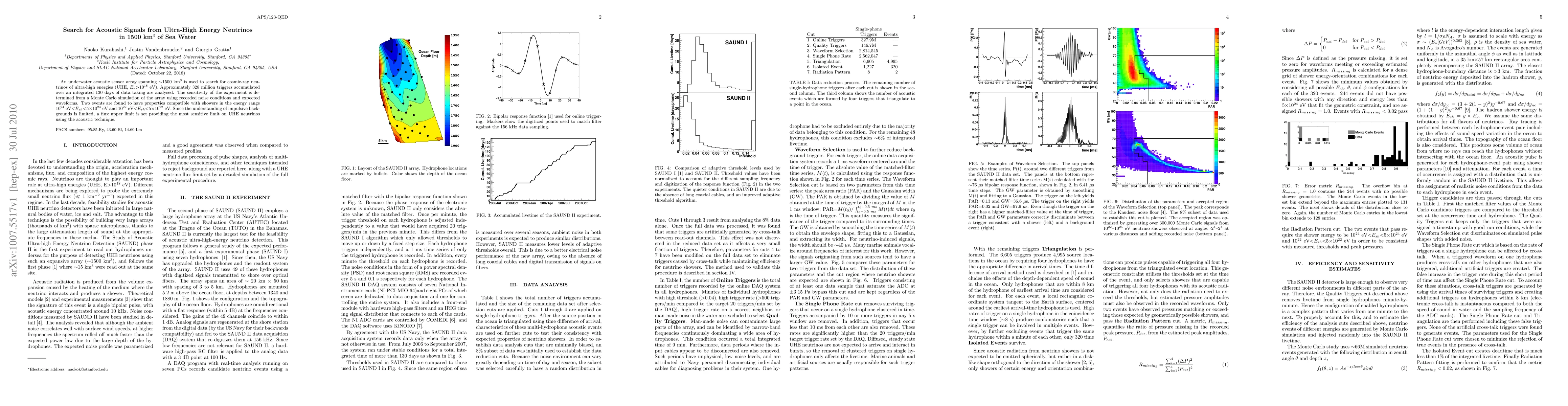 Researchers used an underwater acoustic sensor array to search for ultra-high energy neutrinos in 1500 km^3 of sea water, detecting two events with properties suggesting showers at energies up to 10^24 eV.